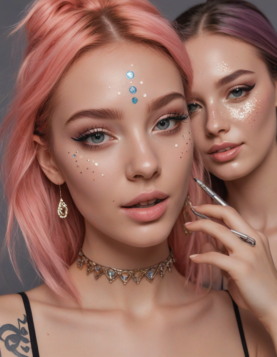 in a group of friends laughing heartily, smoking a cigarette looking cool, a mysterious hologram, Egirl makeup, egirl style makeup, Graphic eyeliner shapes, exaggerated under-eye blush, dewy skin finish, prominent highlighter accents, bold eyebrow styling, faux freckle artistry, glossy lip effect, whimsical eyeshadow designs, layered mascara for volume, soft contouring techniques, ethereal face stickers, shimmering skin highlights, playful eyeliner stickers, multi-dimensional highlight, creative face gems placement, precise brow sculpting, innovative eyeshadow layering, radiant cheek tints, sparkling eye toppers, plush matte lips, intricate face paint details, gradient lip tint, feathered lash application, glowing nose highlight, whimsical cheek art, elongated lash length, pastel eyeshadow gradients, soft-focus skin glow, detailed graphic liner art, natural brow enhancement, subtle lip stain, iridescent cheek shimmer, fluttery eyelash extensions, dreamy highlighter glow, soft-edged contouring, whimsical sticker embellishments, airy matte foundation, delicate glitter accents, nuanced eyeshadow blending, ethereal aesthetic touches, whimsical tattoos