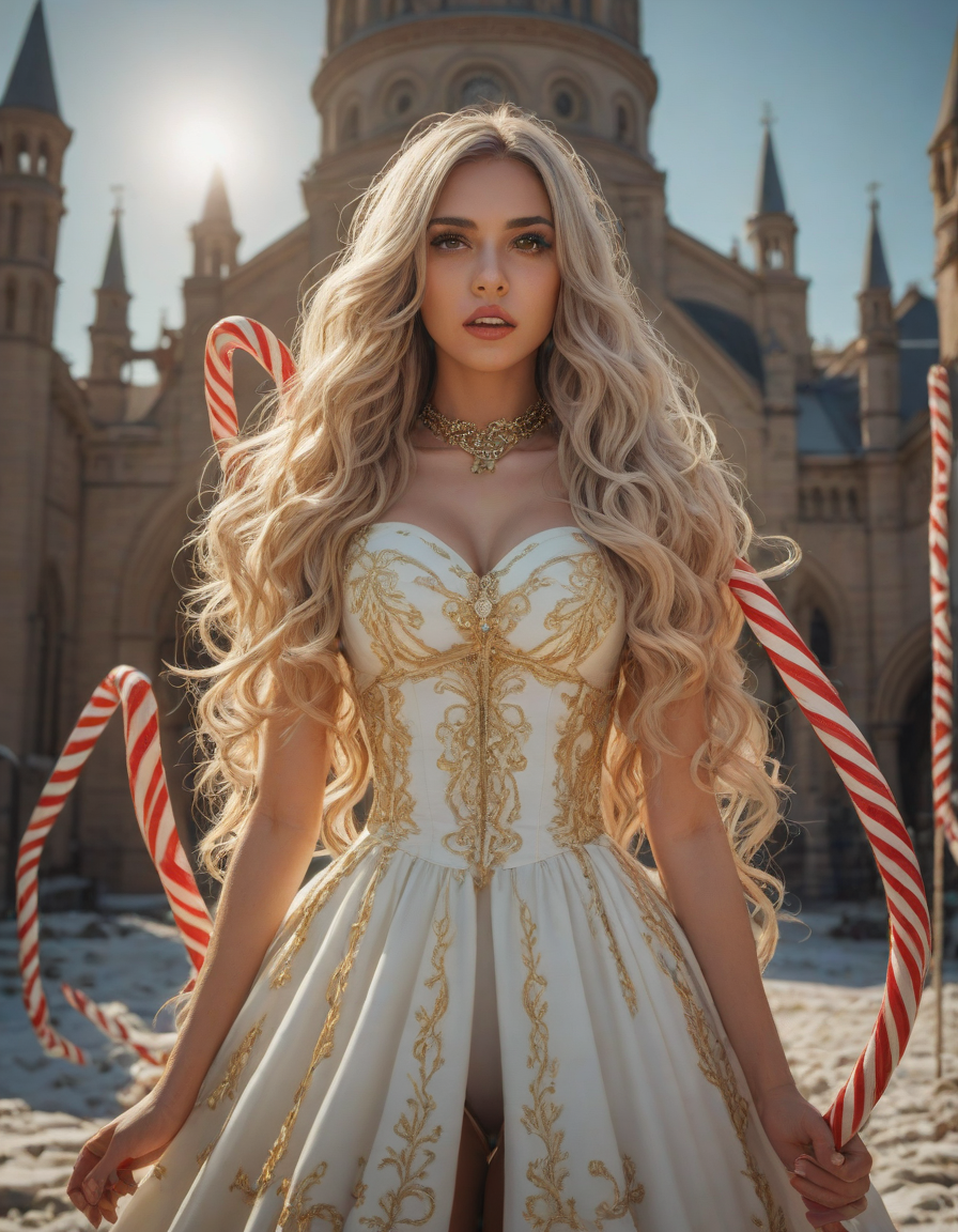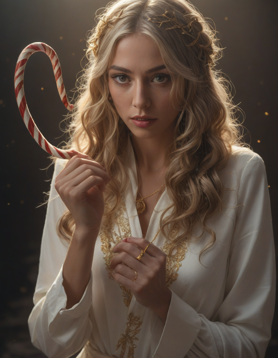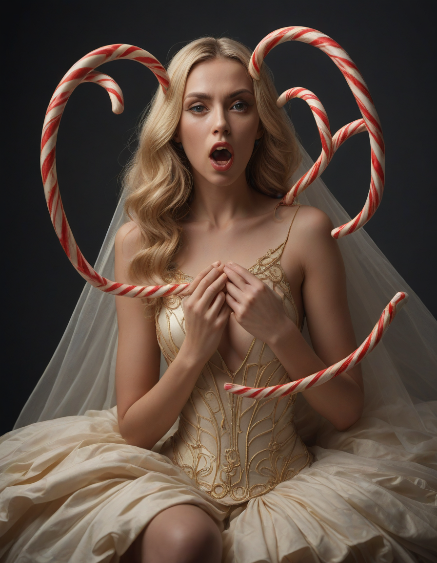 trending on artstation, photograph, paper mache, wedding photo, candy canes, excited, the glint of gold, sadistic, Blinding light highlighting mysterious figure, Awakening with determination, interesting, very upset, santa, aesthetic