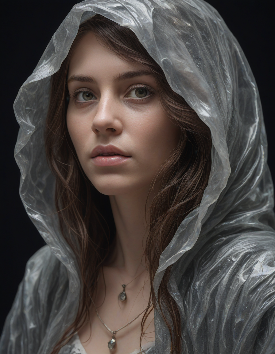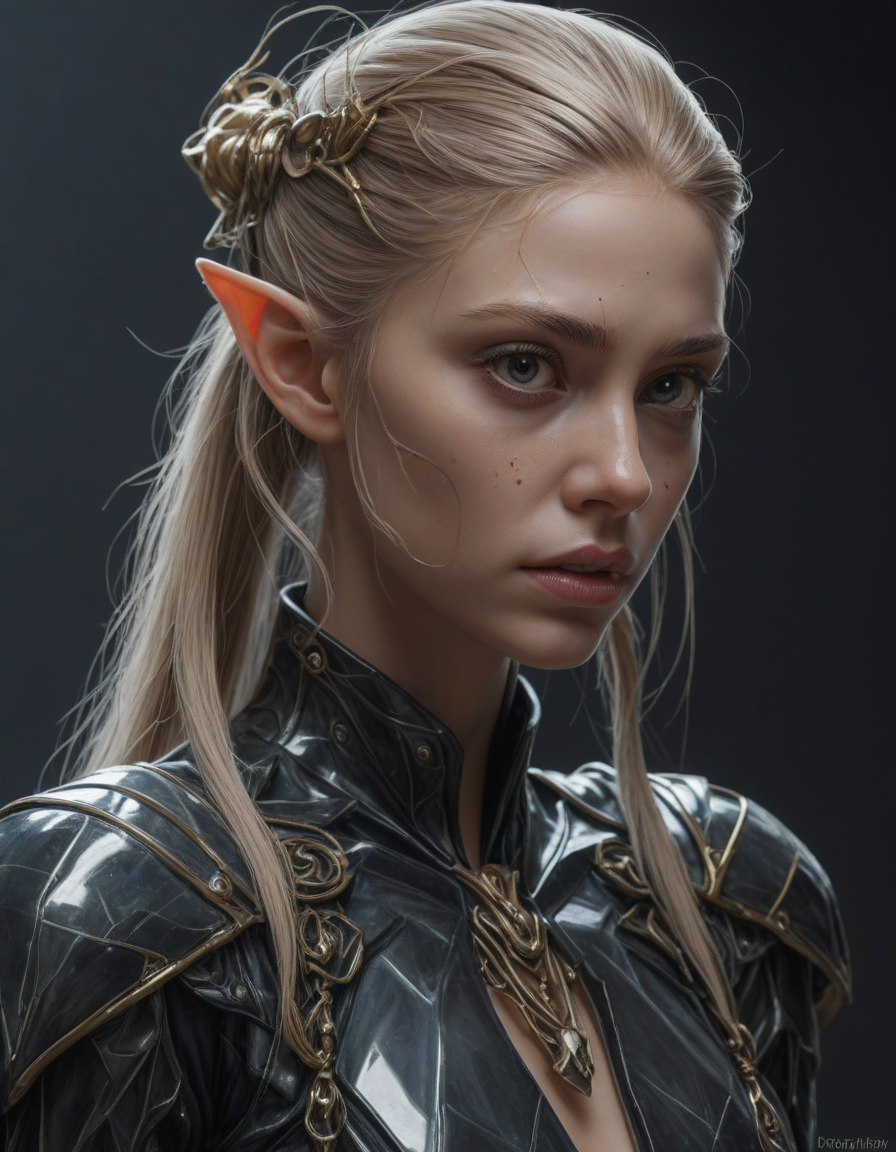 elf, crystal sculpture, resolute, very upset, in ecstatic euphoria, A painting of splendid beauty, Cloaked in darkness