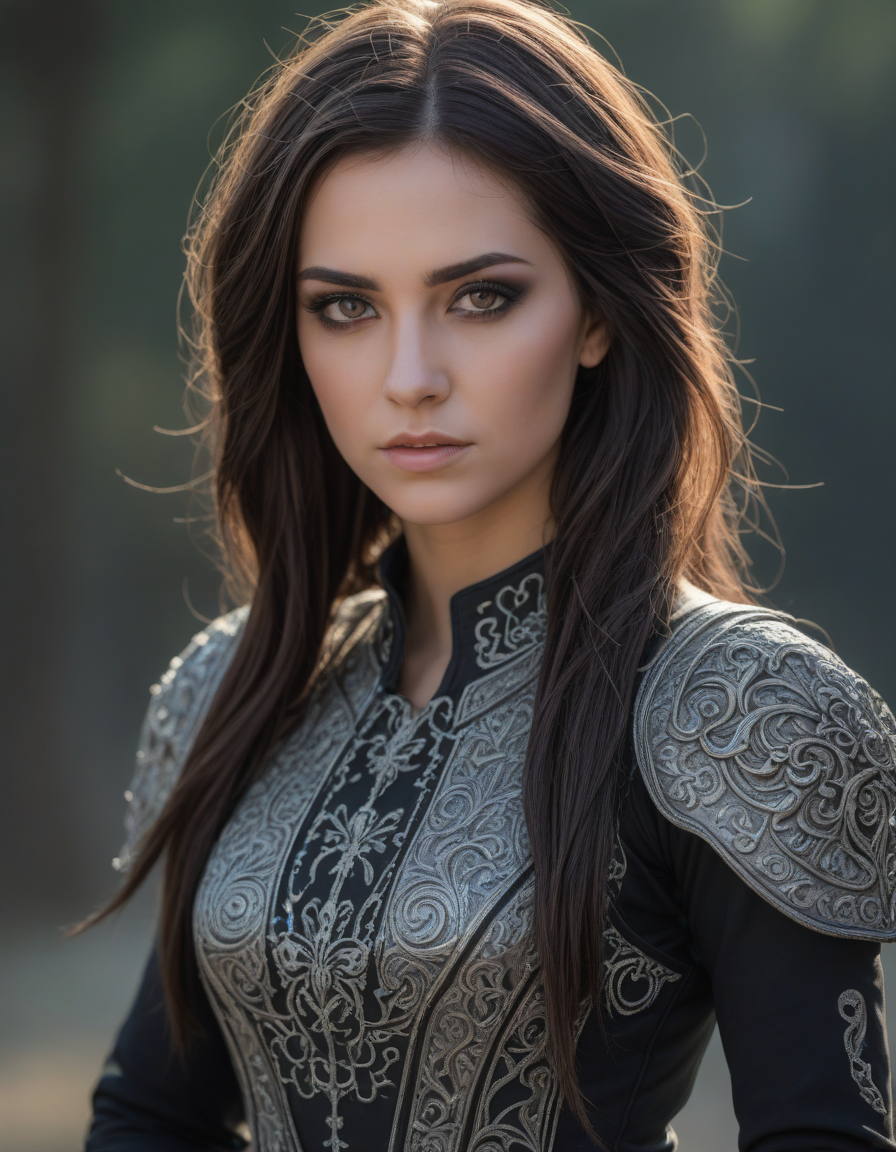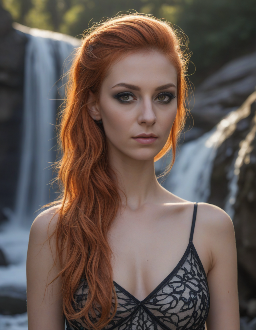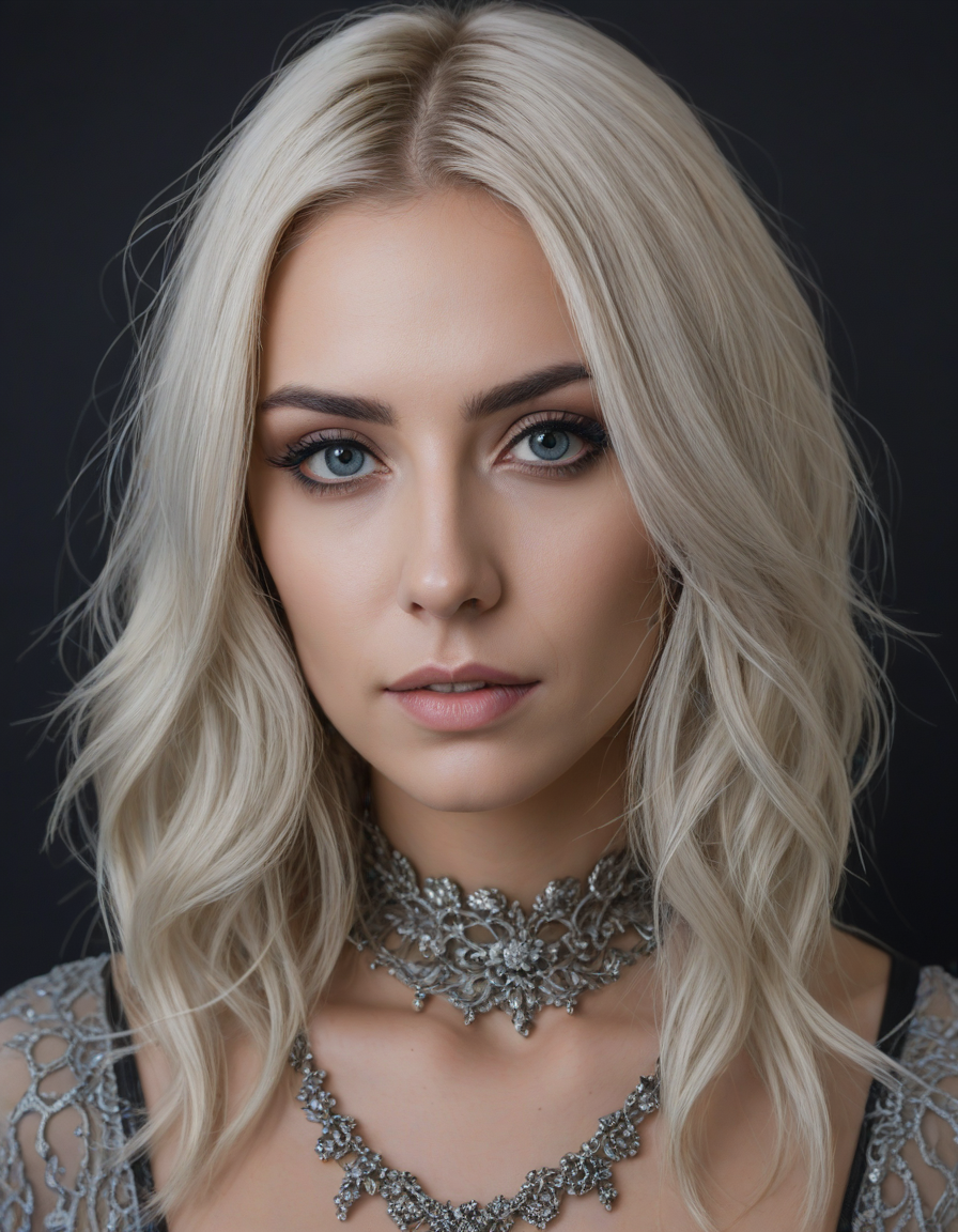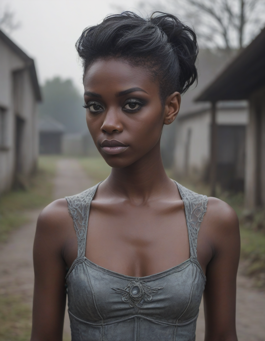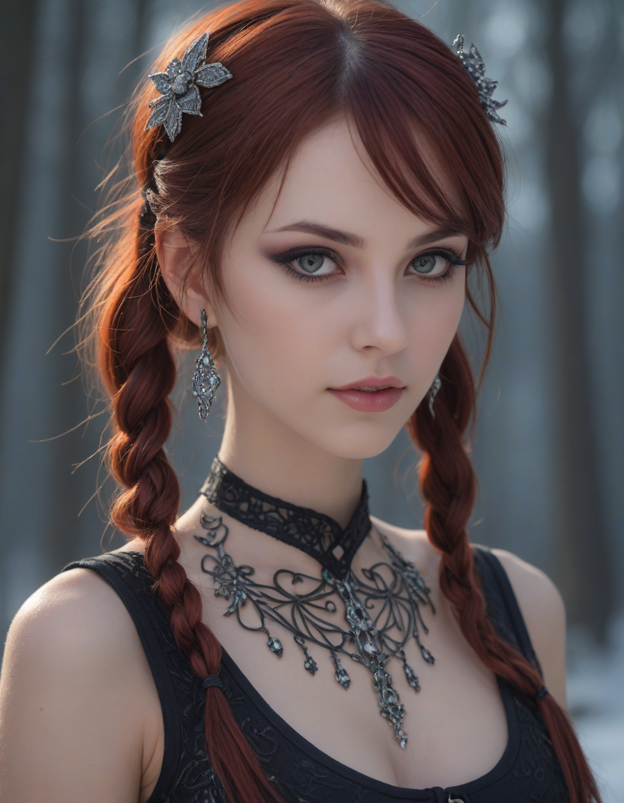 Daybreak frost glinting in morning rays, Gothic beauty with dark makeup, An envious stare