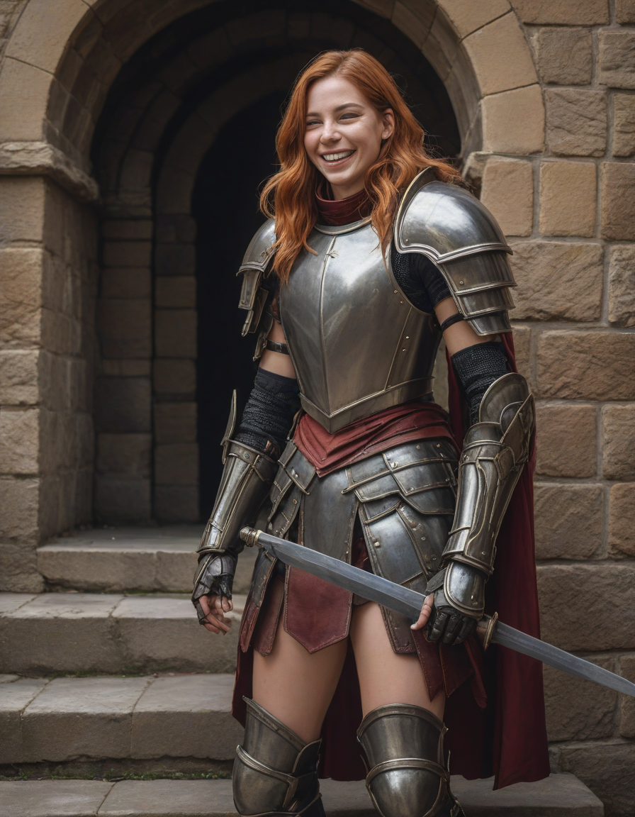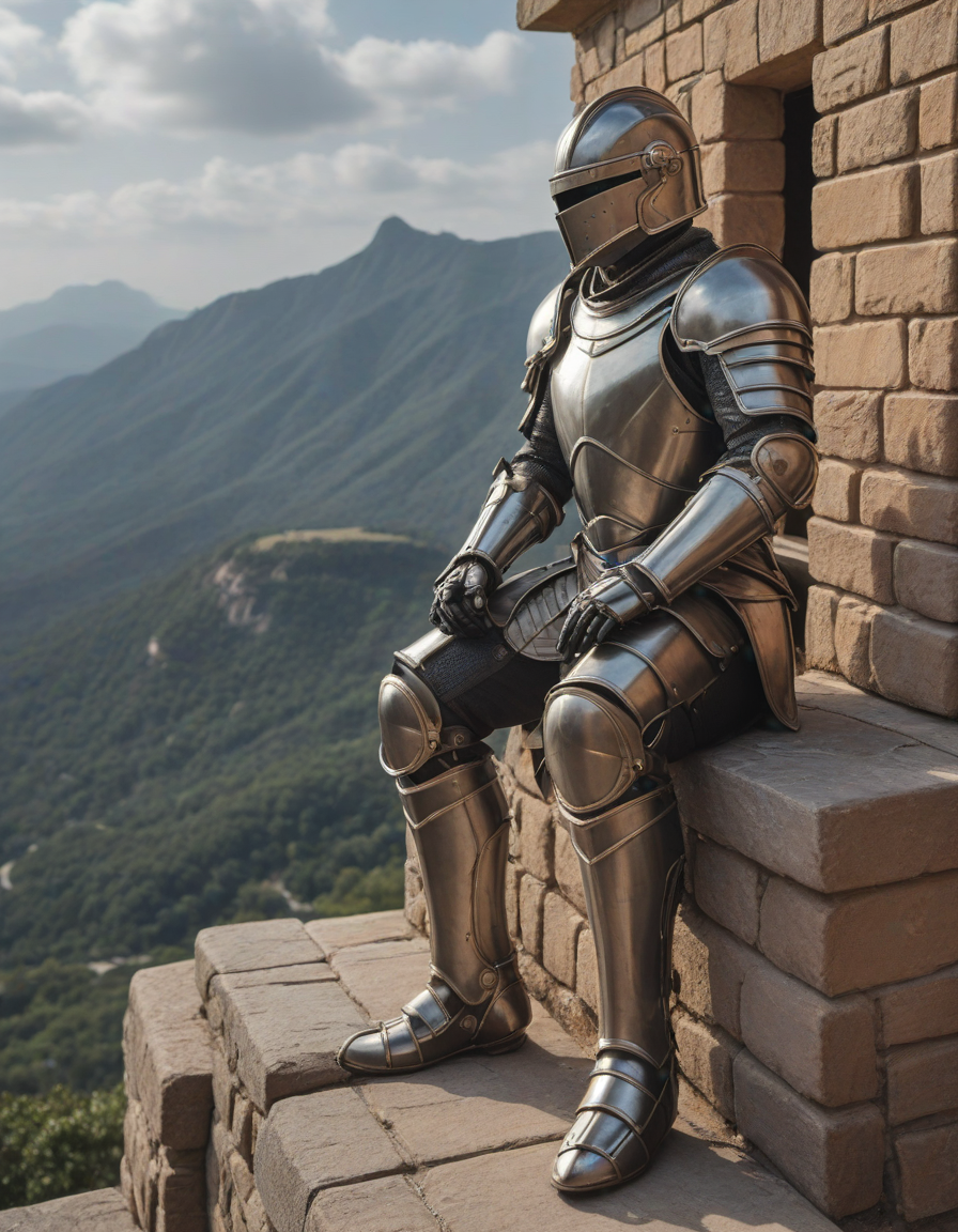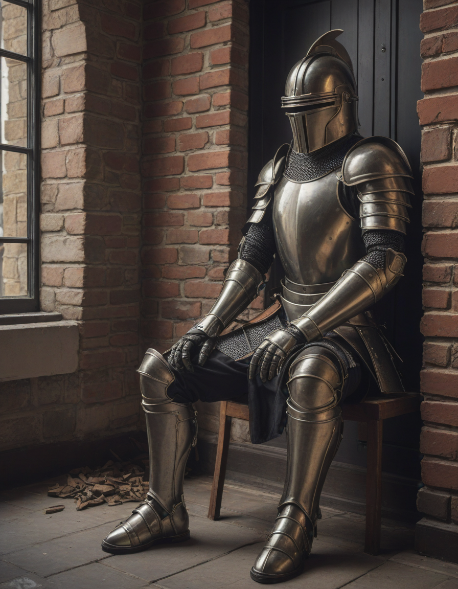 laughing, life of the party, wearing complete set of armor, wearing full armor, Wearing chest armor, wearing leg armor, wearing feet armor, wearing bracer, wearing pauldrons,, brick wall -> great window view, wearing complete set of armor, wearing full armor, Wearing chest armor, wearing leg armor, wearing feet armor, wearing bracer, wearing pauldrons, Wearing helmet, Wearing breastplate, Wearing gauntlets, Wearing greaves, Wearing pauldrons, Wearing vambraces, Wearing cuisses, Wearing sabatons, Wearing gorget, Wearing tassets, Wearing bracers, Wearing cuirass, Wearing faulds, Wearing plackart, Wearing spaulders, Wearing besagews