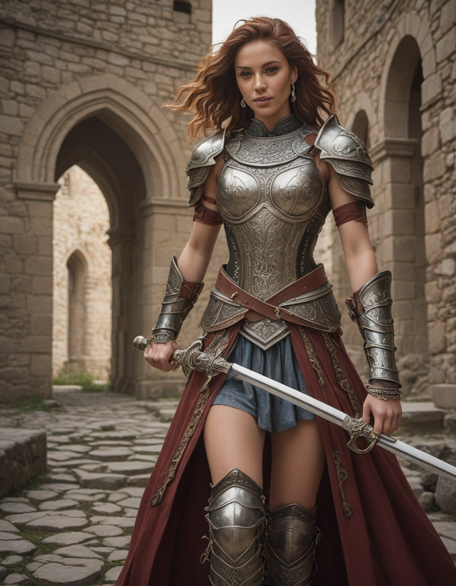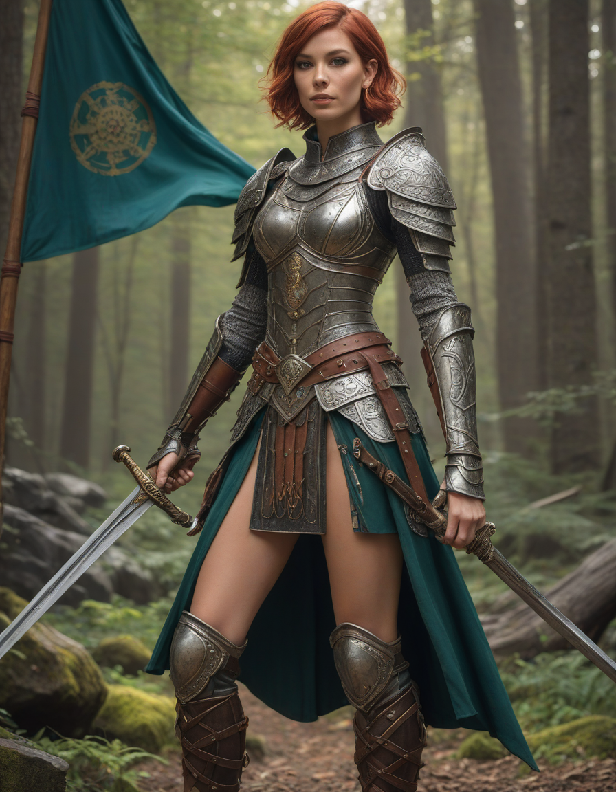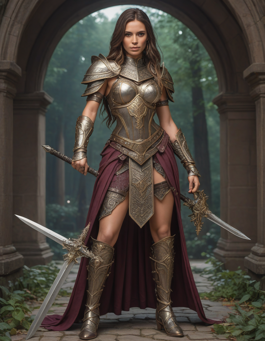 life of the party, bohemian, "free spirit", jewelry, tattoo, spring dress, Holding a sword in both hands in a confident pose, detailed grip, detailed fuller, detailed pommel, detailed blade, detailed edge, , wearing complete set of armor, wearing full armor, Wearing chest armor, wearing leg armor, wearing feet armor, wearing bracer, wearing pauldrons, Wearing helmet, Wearing breastplate, Wearing gauntlets, Wearing greaves, Wearing pauldrons, Wearing vambraces, Wearing cuisses, Wearing sabatons, Wearing gorget, Wearing tassets, Wearing bracers, Wearing cuirass, Wearing faulds, Wearing plackart, Wearing spaulders, Wearing besagews