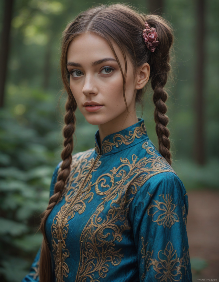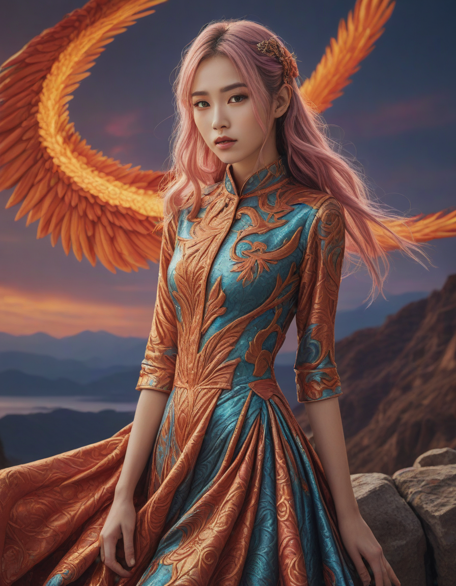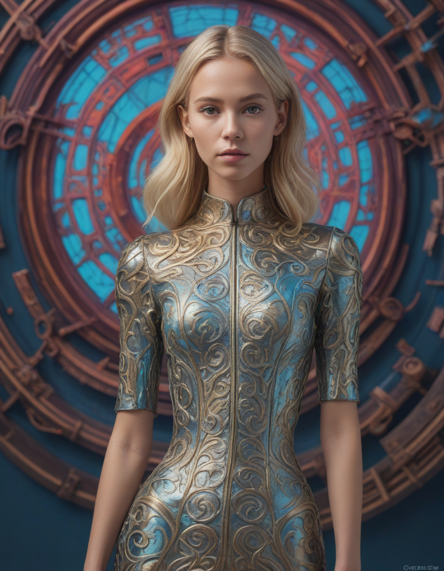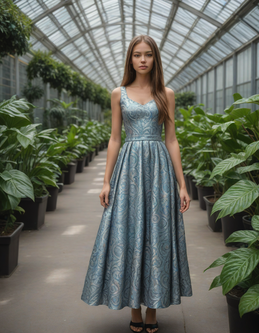 mesmerizing colors, a mysterious hologram, Brocade dress