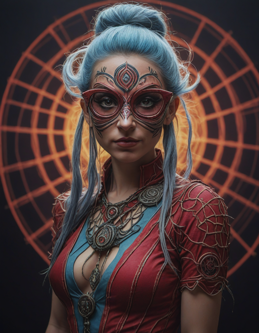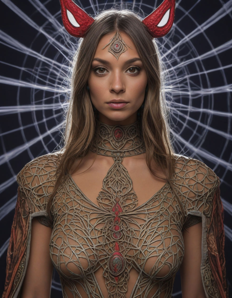 ratgirl, muppet, evil santa, wearing a spiderman costume, american indian, psychedelic trip, symmetrical, ethereal being of light