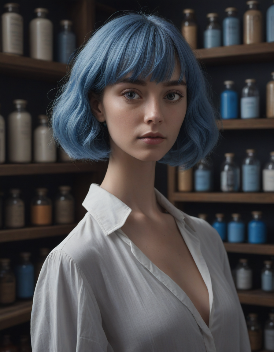 Low-Key Lighting, light blue colored iris pigment, light blue colored eyes, blue-iris-color, blue-eye-color,
