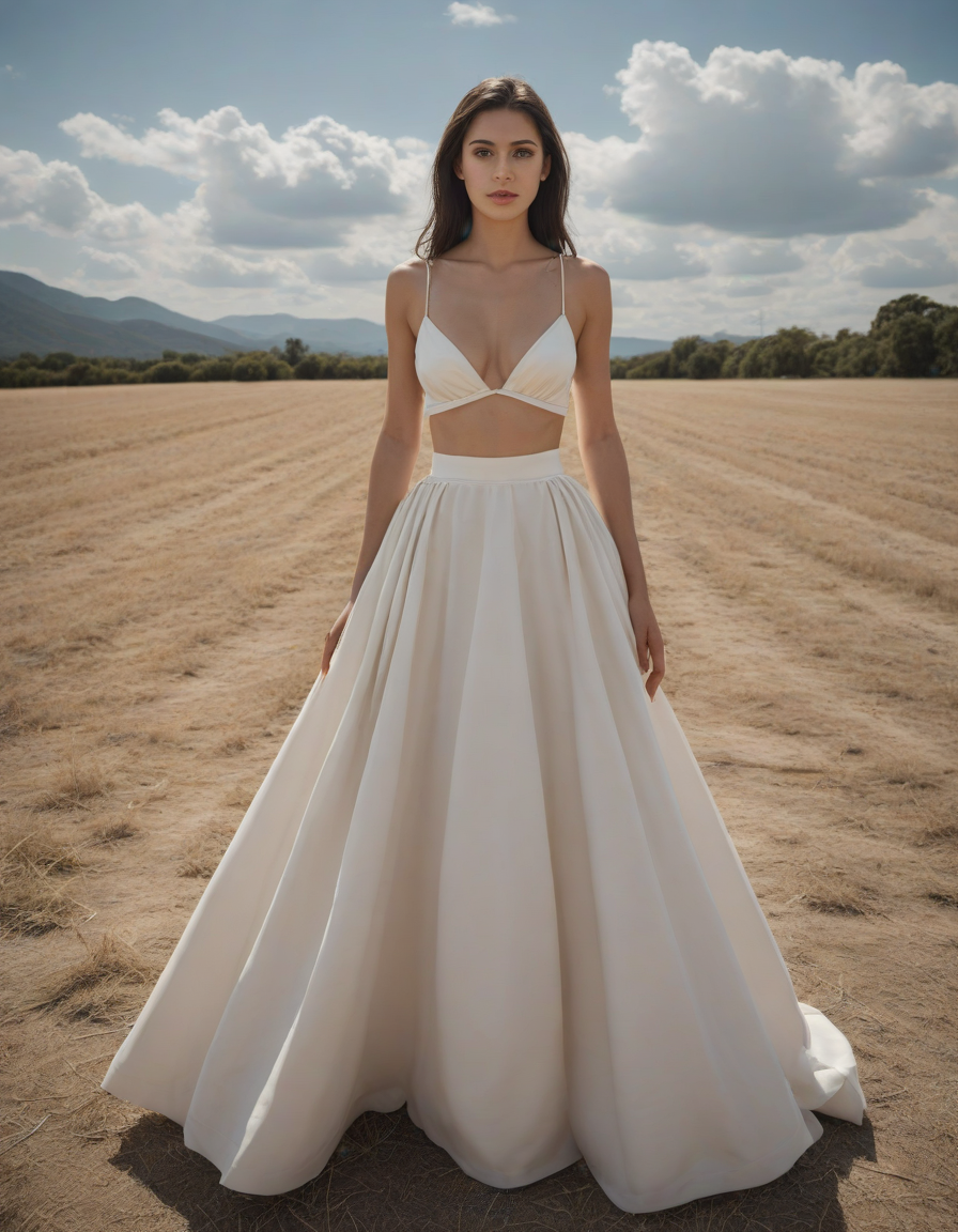 Wide Skirt, wide ballgown hem, a line skirt, petticoat skirt, , looking at viewer, excessive cleavage, low neckline, revealing chest, revealing cleavage, cleavage-baring, revealing, excessively revealing, very revealing, lowcut, lowrise,