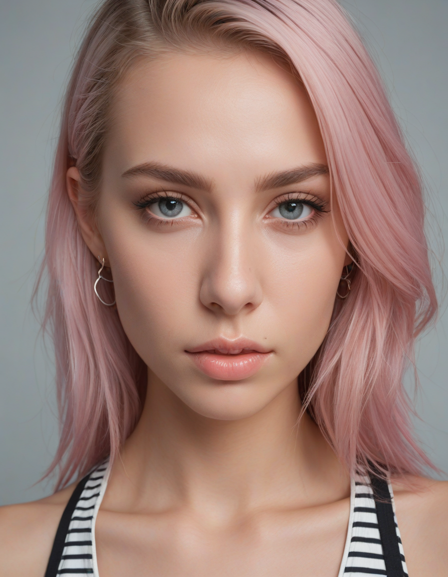 Wide Skirt, wide ballgown hem, a line skirt, petticoat skirt, , Visualize a photorealistic portrayal of an 18-year-old high school senior girl, epitomizing the e-girl aesthetic with a blend of internet culture's vibrancy and personal audacity. Clad in an oversized striped shirt under a black graphic t-shirt dress, her style is a testament to e-girl fashion's layered intricacy, complemented by fishnet tights and chunky boots. Her makeup features dramatic winged eyeliner, neon eyeshadow, and dark lipstick, with blush bringing her face to life. Accessories like silver chains and a heart pendant choker, along with pastel or neon hair streaks, enhance her playful rebellion. Standing hands-on-hips, she exudes confidence and individuality against a backdrop suggestive of e-girl life, with neon signs and string lights. This scene captures her bold identity and expressive spirit at this pivotal moment., oval face shape, almond-shaped eyes, voluminous lashes, slightly arched eyebrows, narrow nasal bridge, rounded nose tip, symmetrical nostrils, full lips, pronounced cupid's bow, slightly fuller lower lip, defined cheekbones, rounded chin, smooth complexion, softly contoured jawline, balanced facial proportions, symmetrical features, gently curved eyelids, soft brow ridge, harmonious cheek to jawline transition, subtle philtrum, delicate ear lobes, straight blonde hair, clear skin, hooded eyelids, light pink lip color, slightly pouty expression, casual pose with hand on face, slight head tilt, indoor lighting, Light blue irises, Medium-thickness eyebrows, Softly angled eyebrows, A hint of freckles across the nose and cheeks, Natural makeup, Gentle frown lines between the eyebrows, Soft nasolabial folds, Smooth forehead, Subtle dimple on the chin, Clear facial contour without distinct shadows, Even skin tone with a hint of natural pink undertones, Slightly rosy cheeks, Tapered jawline, Fine hair texture with gentle waves, Youthful appearance with soft facial features, Lip fillers, thick full lips, enhanced lip volume, accented cupid's bow, Rhinoplasty, refined nose shape, straightened nasal profile, facial symmetry, Botox injections, smoothed facial lines, reduced wrinkles, youthful appearance, Cheek fillers, pronounced cheekbones, sculpted contours, lifted cheeks, brightened eyes, reduced under-eye bags, rejuvenated area, Liposuction contoured shape, reduced excess fat, sculpted physique, Dermal fillers, restored volume, smoothed texture, diminished lines, strengthened definition, balanced proportions, enhanced jawline, Facelift, tightened skin, reduced sagging, improved skin tone, reduced imperfections, enhanced clarity, Blepharoplasty, Reduced puffiness, restored youthful eye contour, Enhanced chin shape, improves facial harmony, strengthened jawline definition, symmetry facial features, golden_ratio