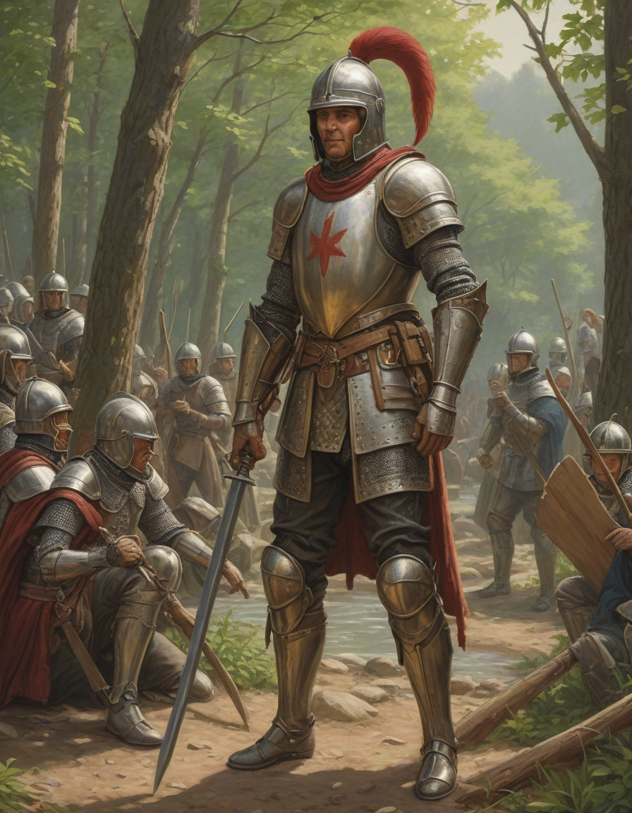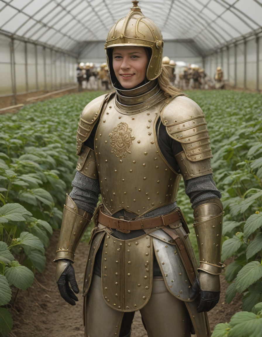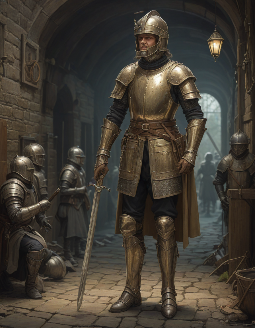center of attention, Wearing helmet, Wearing breastplate, Wearing gauntlets, Wearing greaves, Wearing pauldrons, Wearing vambraces, Wearing cuisses, Wearing sabatons, Wearing gorget, Wearing tassets, Wearing bracers, Wearing cuirass, Wearing faulds, Wearing plackart, Wearing spaulders, Wearing besagews