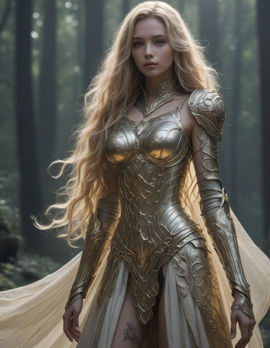 heroic, shining-armored knight, Ethereal, evanescent, otherworldly