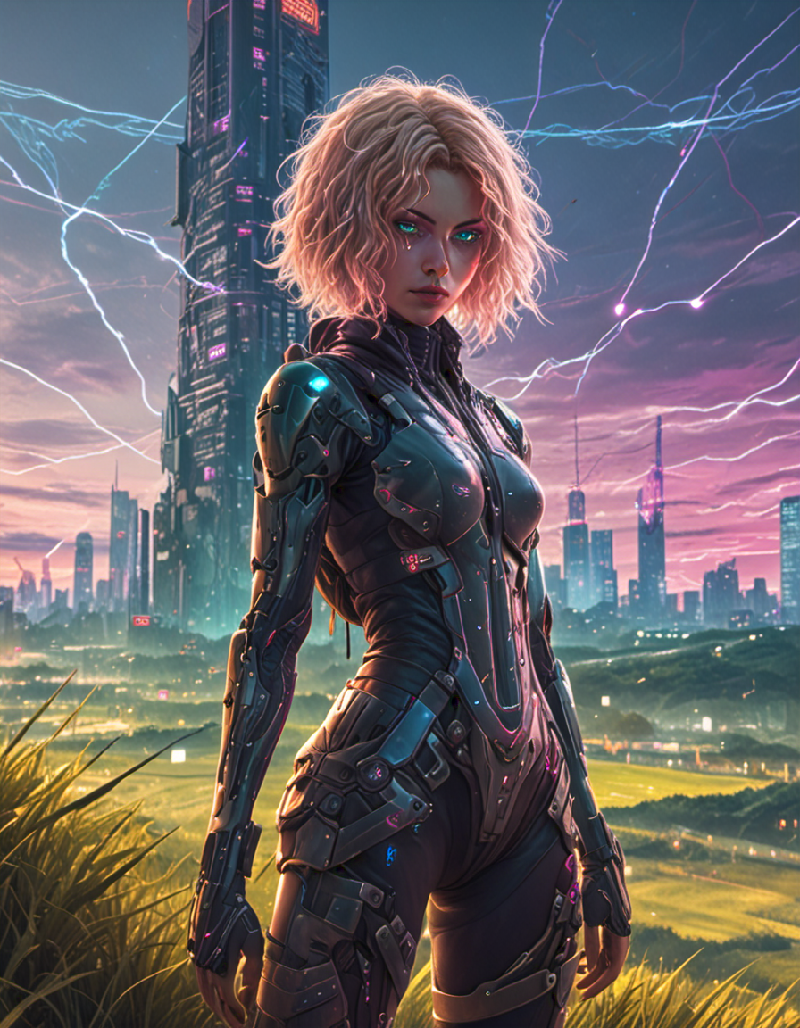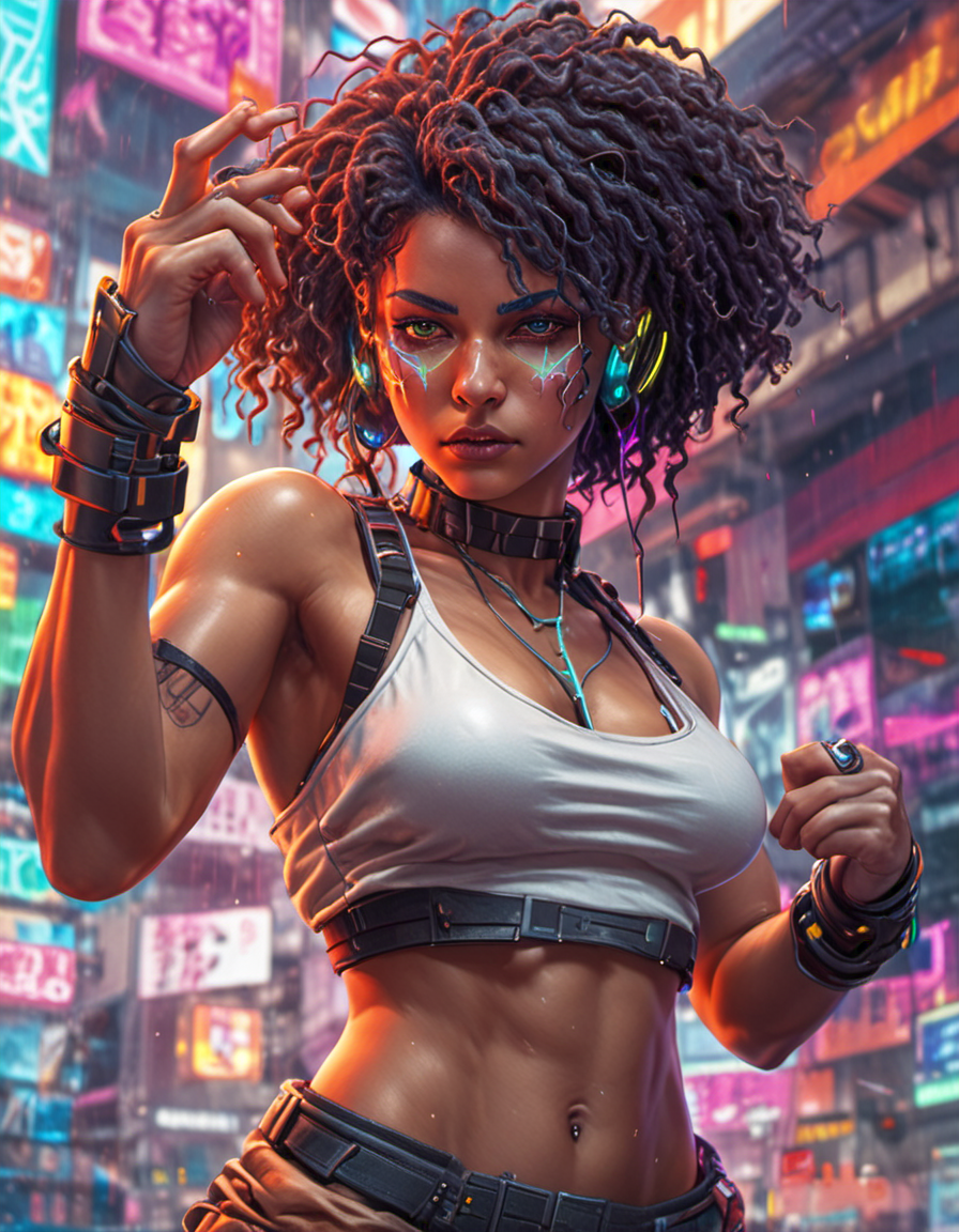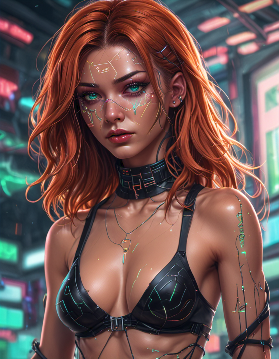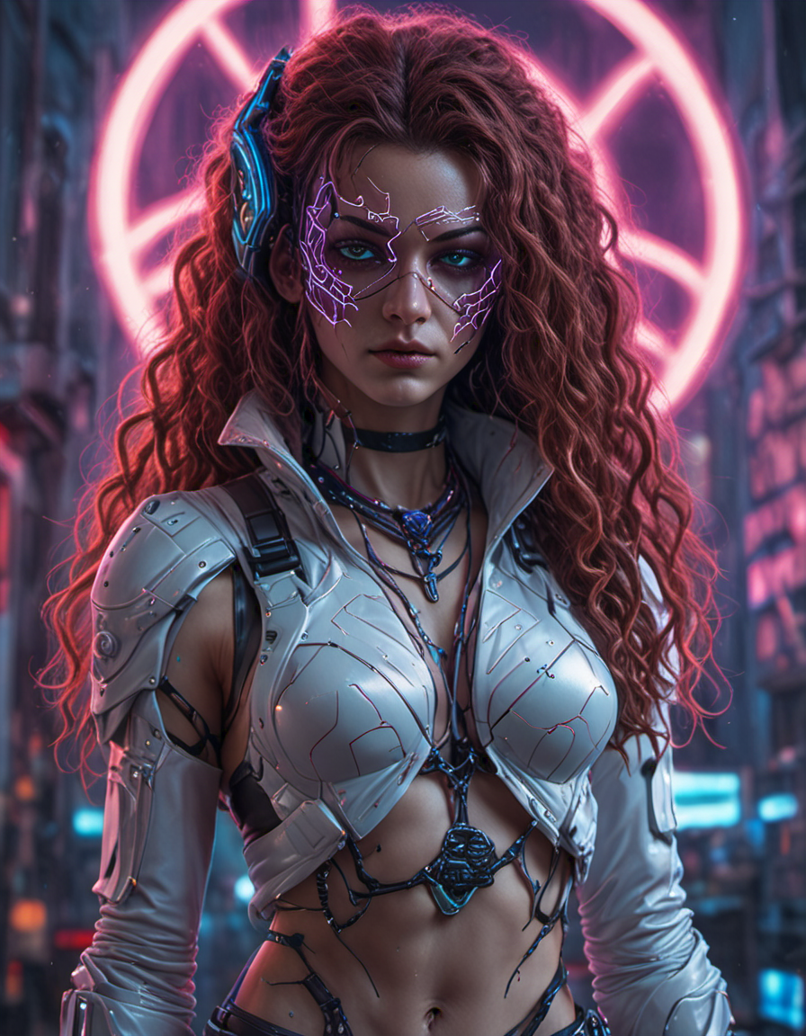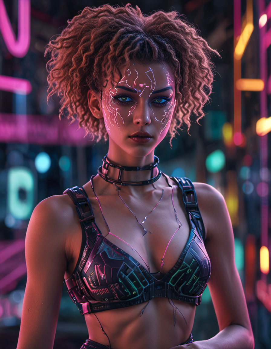 cyberpunk hacker, surrounded by neon lights and holographic screens