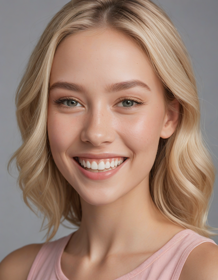 wearing sleeveless leotard, wearing one peice clothing, leotard, sleeveless, , laughing, oval face shape, almond-shaped eyes, voluminous lashes, slightly arched eyebrows, narrow nasal bridge, rounded nose tip, symmetrical nostrils, full lips, pronounced cupid's bow, slightly fuller lower lip, defined cheekbones, rounded chin, smooth complexion, softly contoured jawline, balanced facial proportions, symmetrical features, gently curved eyelids, soft brow ridge, harmonious cheek to jawline transition, subtle philtrum, delicate ear lobes, straight blonde hair, clear skin, hooded eyelids, light pink lip color, slightly pouty expression, casual pose with hand on face, slight head tilt, indoor lighting, Light blue irises, Medium-thickness eyebrows, Softly angled eyebrows, A hint of freckles across the nose and cheeks, Natural makeup, Gentle frown lines between the eyebrows, Soft nasolabial folds, Smooth forehead, Subtle dimple on the chin, Clear facial contour without distinct shadows, Even skin tone with a hint of natural pink undertones, Slightly rosy cheeks, Tapered jawline, Fine hair texture with gentle waves, Youthful appearance with soft facial features, wearing complete set of armor, wearing full armor, Wearing chest armor, wearing leg armor, wearing feet armor, wearing bracer, wearing pauldrons,