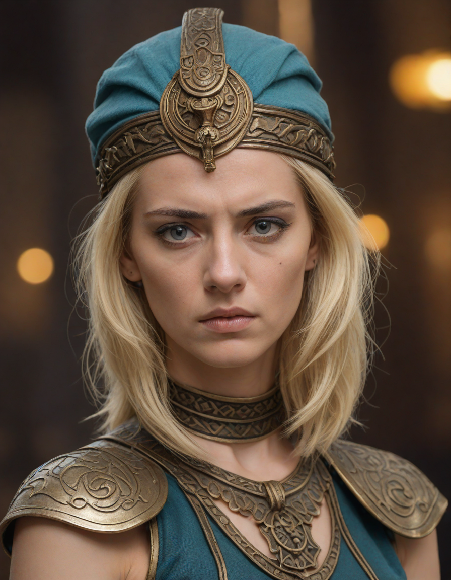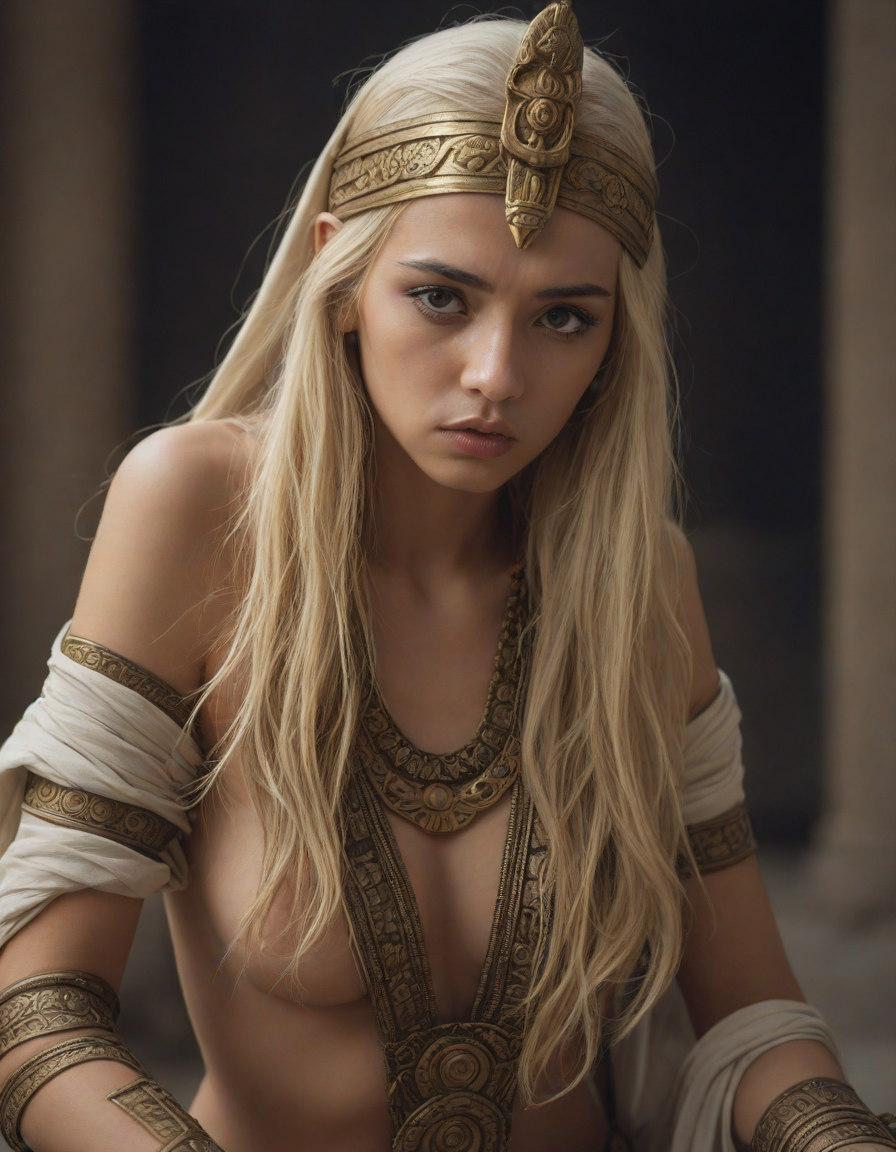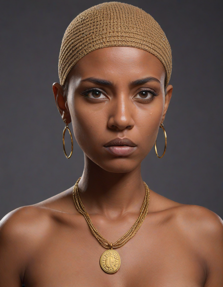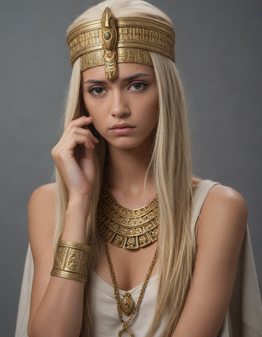 ancient pharaoh, concerned, cowering in humiliation, sultry look, beanie