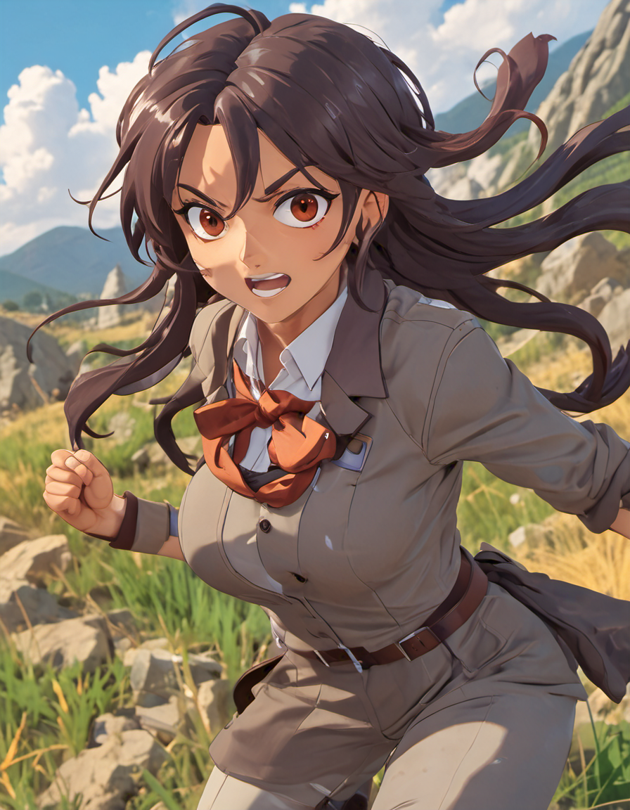 static portrait, photorealistic, traditional framing→dynamic action pose, motion lines, comic book panel composition