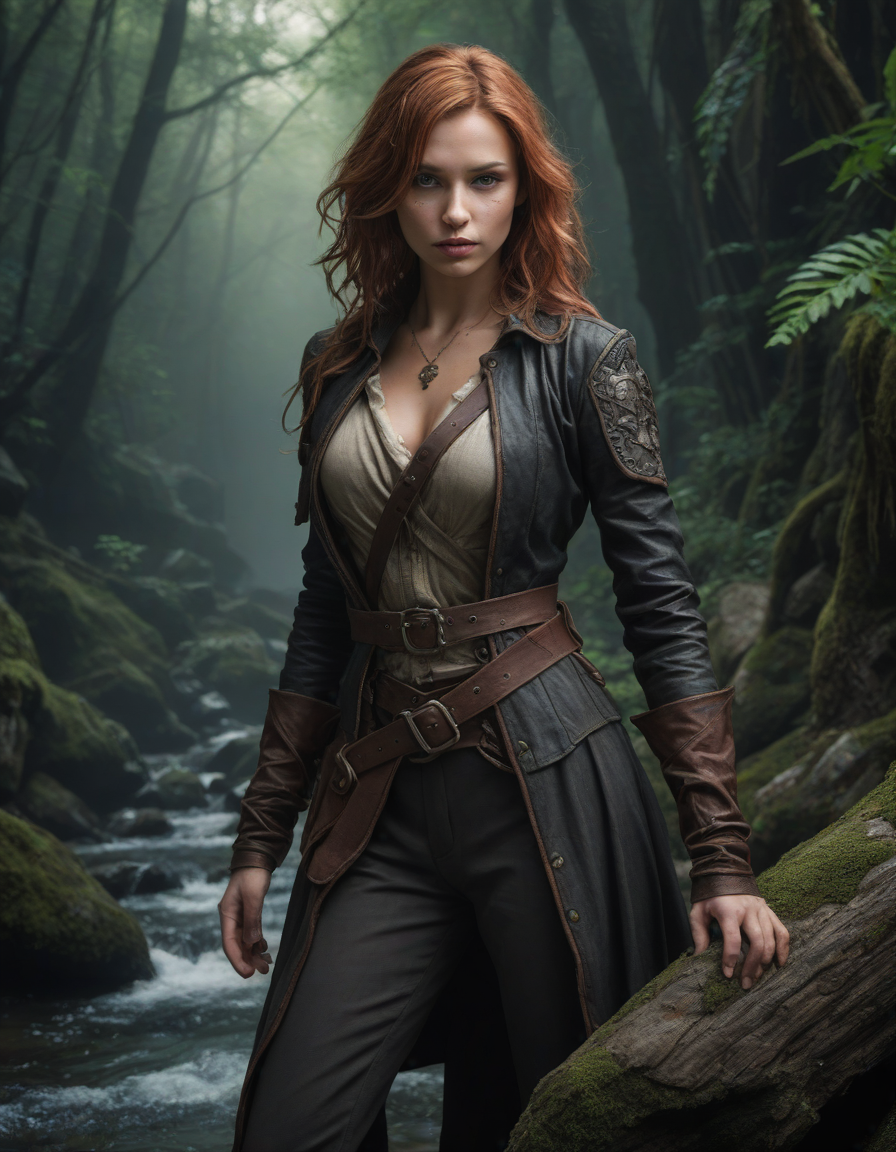 Rugged terrain, naiad, On edge, vibrant wallpaper, lips pursed in determination, pirate, Relaxed, a mysterious figure, shrouded in shadows