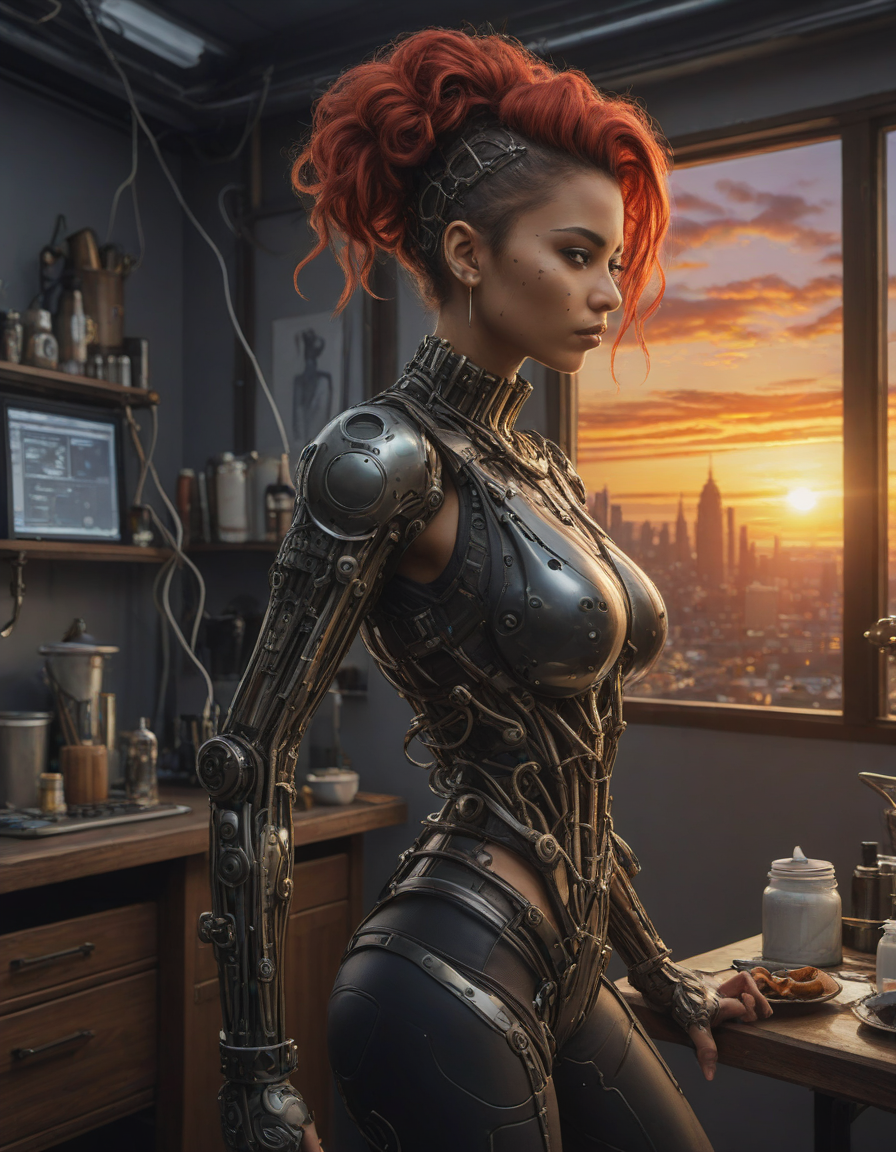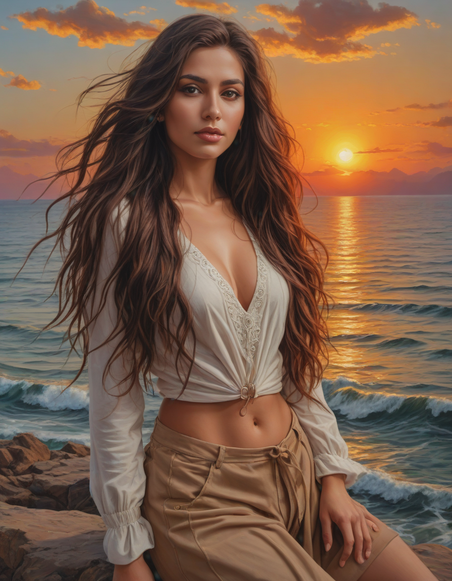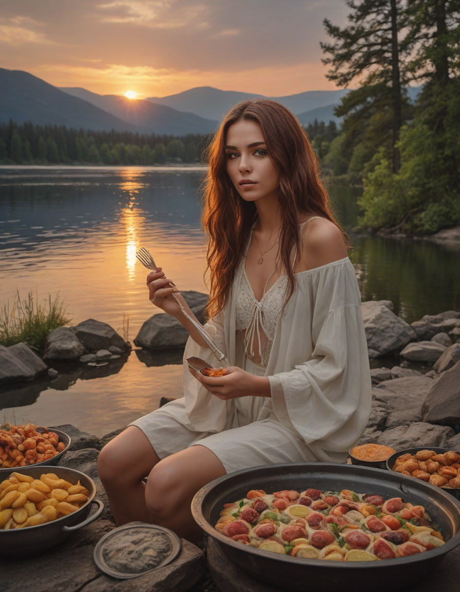 gangsta, Vivid oil paints, decadent feast, gazing at a breathtaking sunset