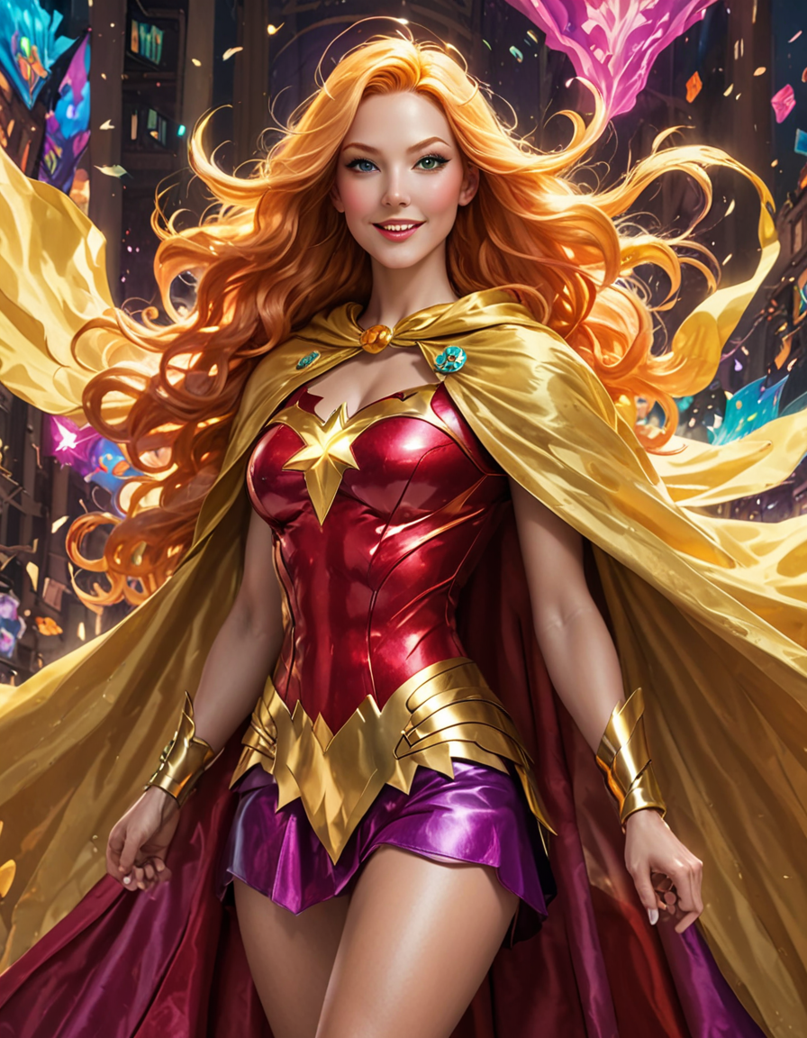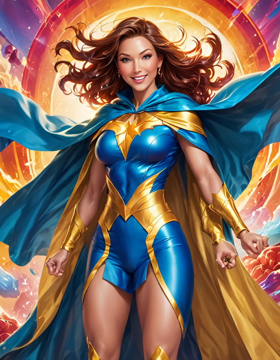 awkward uncomfortable pose, fidgeting nervously, hunched shoulders→confident superhero pose, hands on hips, billowing cape