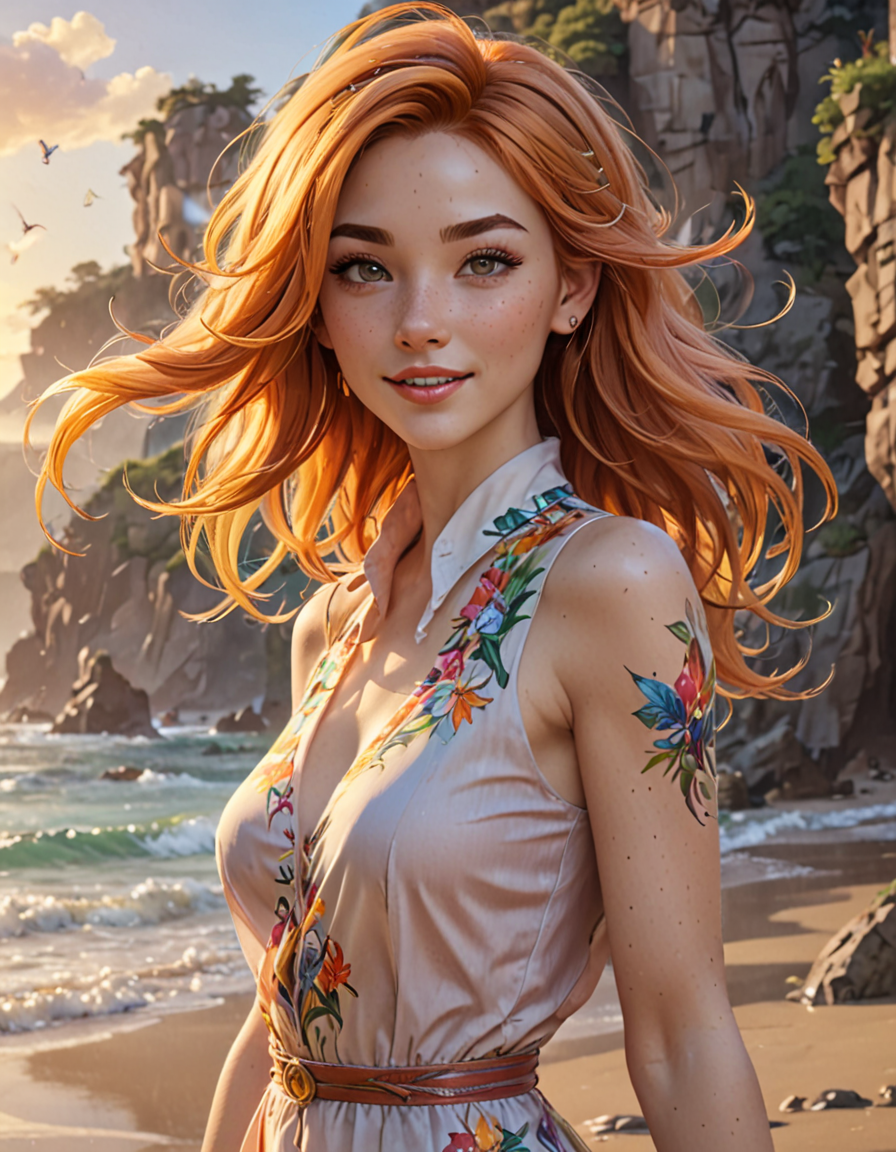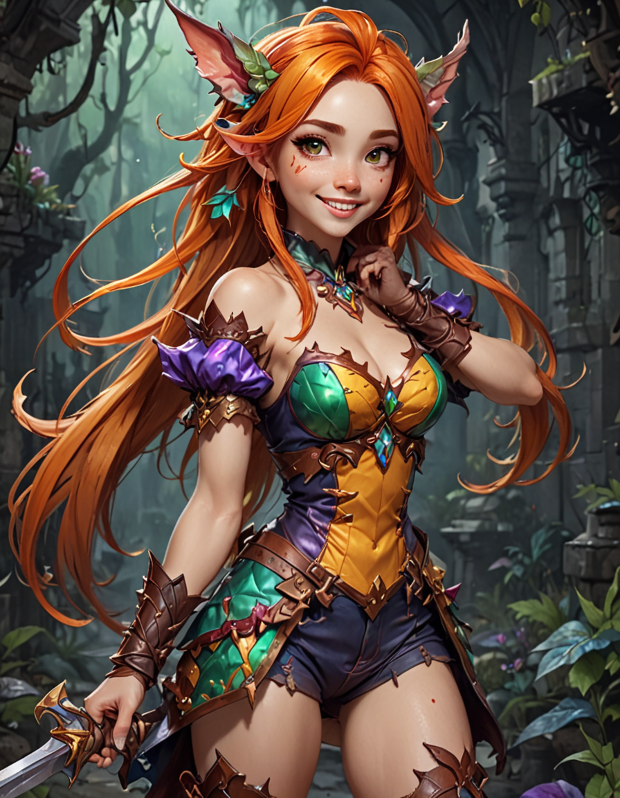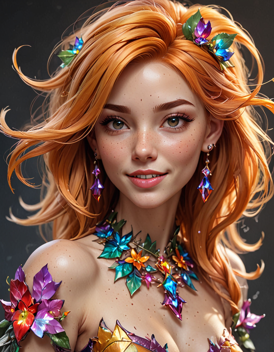 Stern, stoic, unamused expression→Fae, spritely, mischievous expression