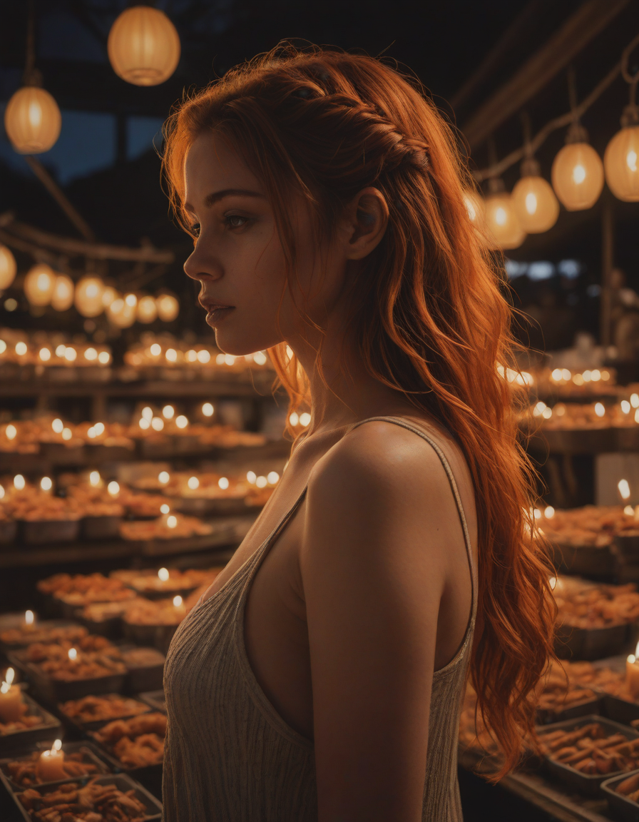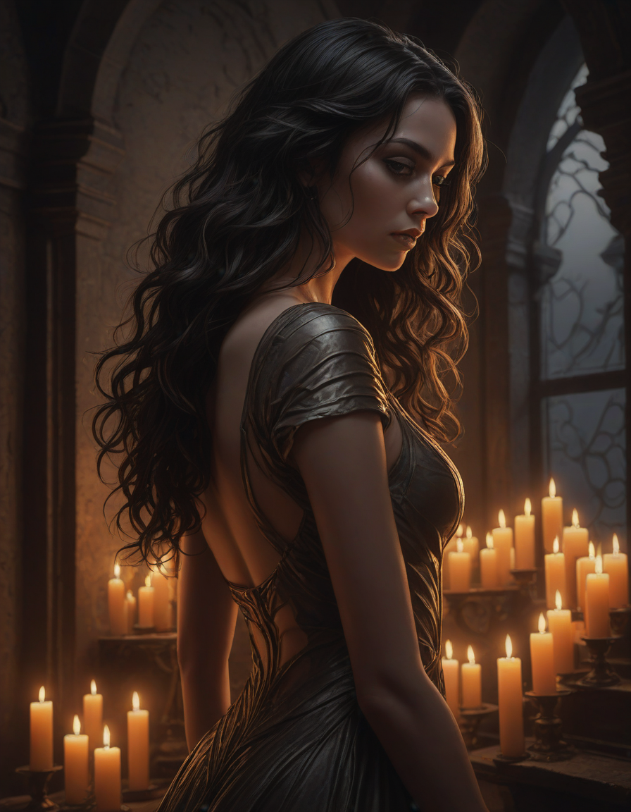 Curves softening in an alluring embrace, silhouette, terrifying, Glistening in the light of a thousand candles, tangerine skyline