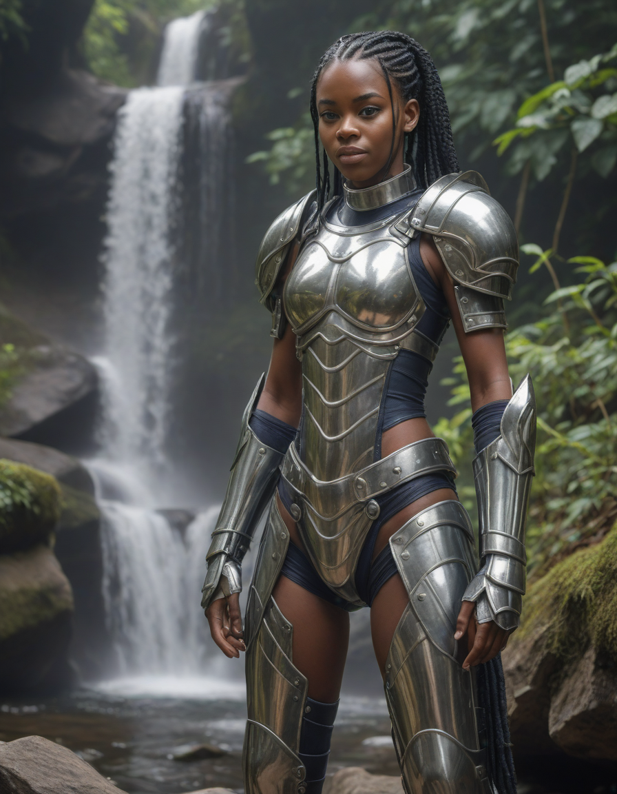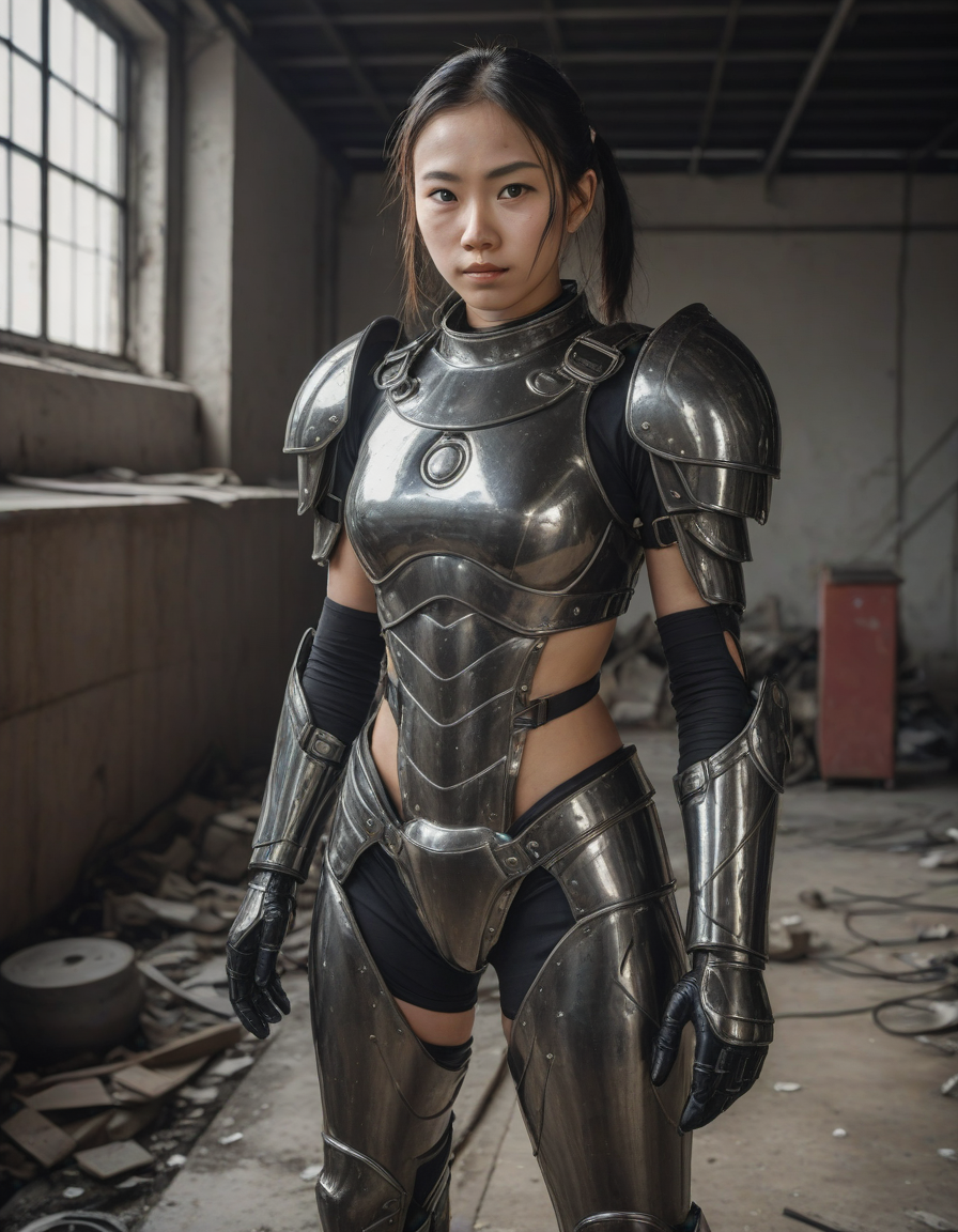 looking at viewer, action, shiny, glossy PVC outfit, (shiny glossy PVC cloth textures), clothes made from pvc, plastic, wearing complete set of armor, wearing full armor, Wearing chest armor, wearing leg armor, wearing feet armor, wearing bracer, wearing pauldrons,