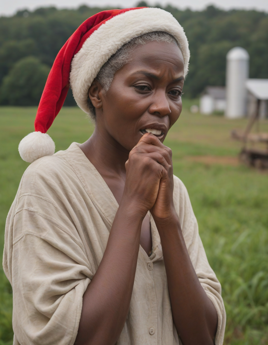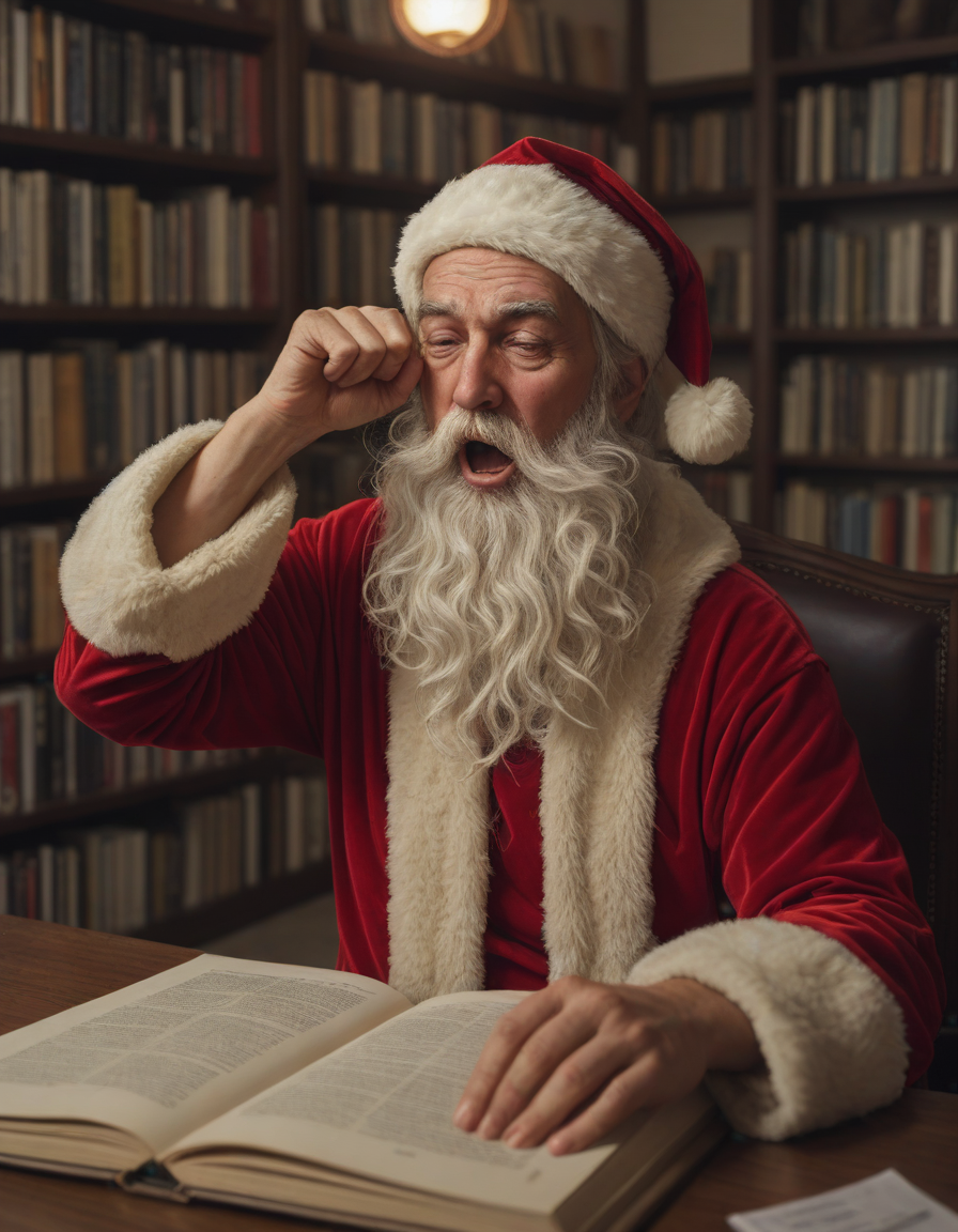 deep sleep, drunk santa yelling, fist raised in triumph, Eyes scanning cautiously