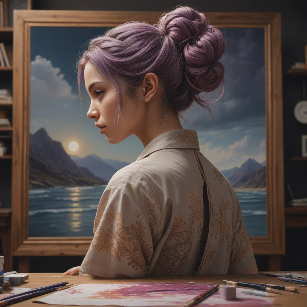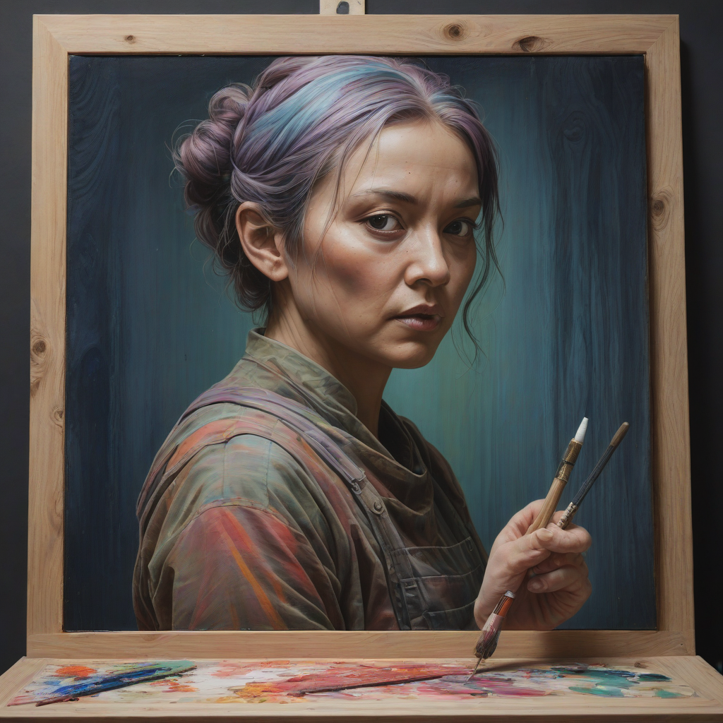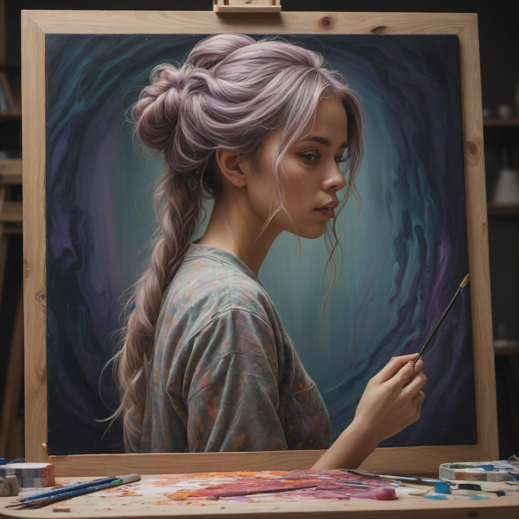 mad with power, lizardperson, the starry night, A painter meticulously blends hues on a wooden canvas, shadows