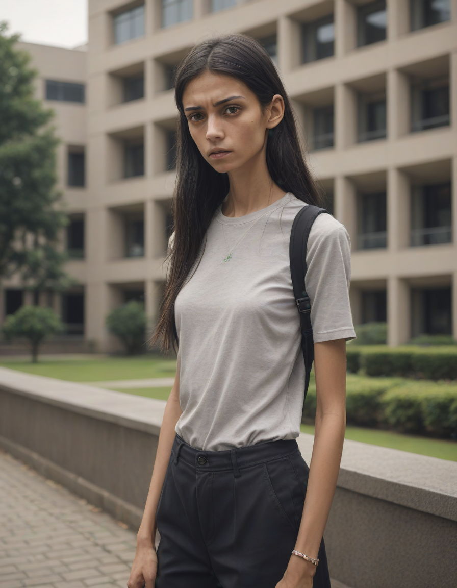 Skinny, Anorexic, Pronounced collarbones, visible rib cage, slender arms, narrow waistline, defined hip bones, sharp elbow angles, thin legs, minimal body fat, conspicuous wrist bones, gaunt facial features, prominent cheekbones, slender neck, defined jawline, visible tendons, accentuated knee caps, bony shoulders, delicate frame, slight muscle definition, thin calves, angular body contours, skeletal appearance, pronounced bone structure, minimal curvature, stark bodily features, fragile silhouette, pencil-thin thighs, sharp shin bones, elongated limb appearance, minimal buttock volume, tight skin over bones, defined thigh gap, prominent forearm veins, skeletal wrist appearance, offended