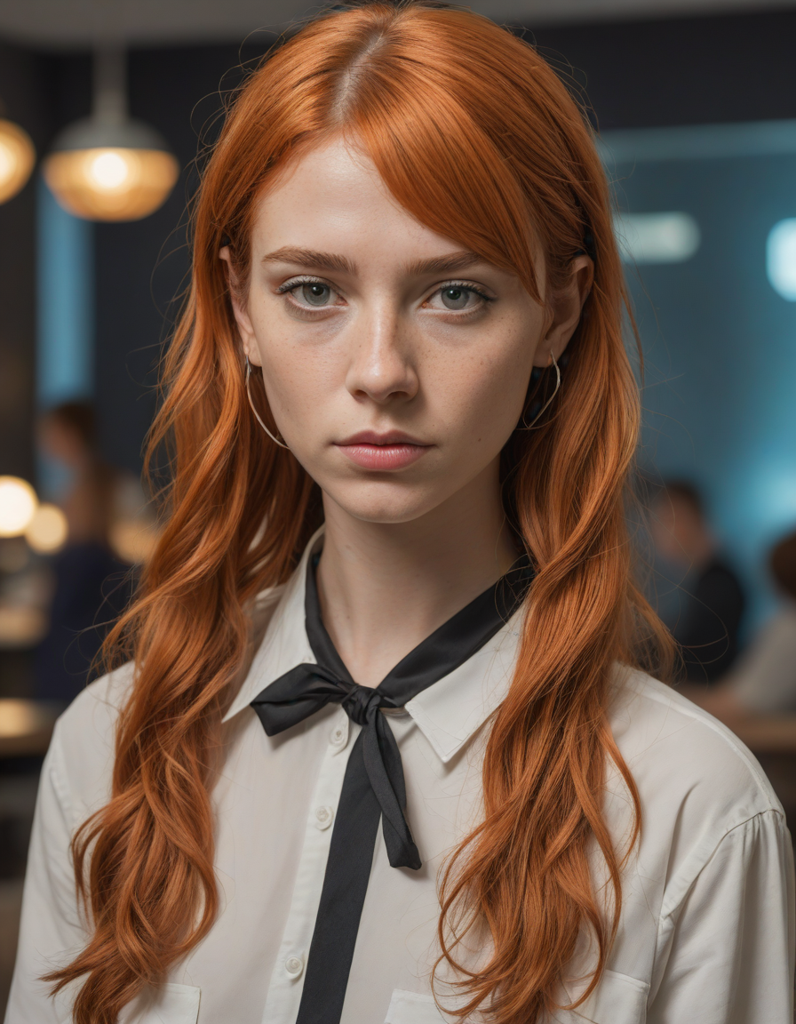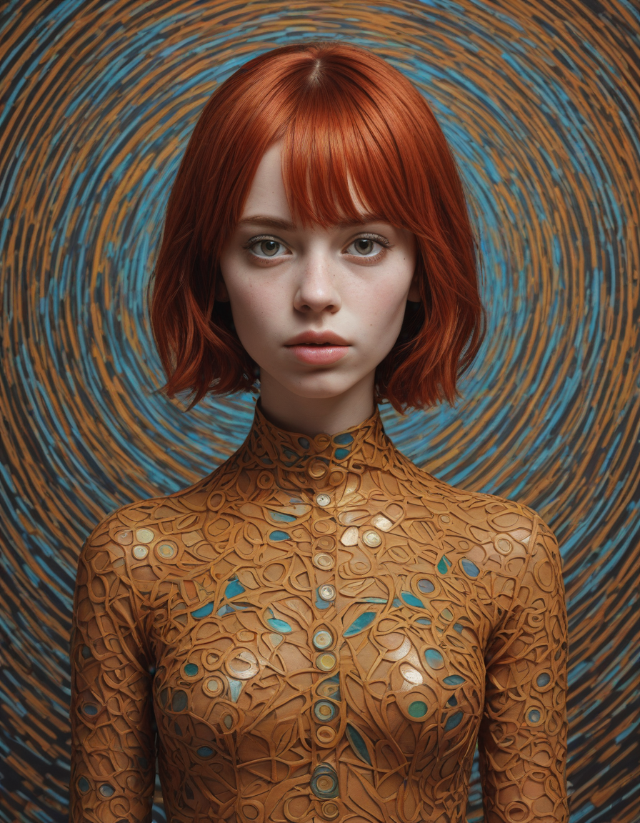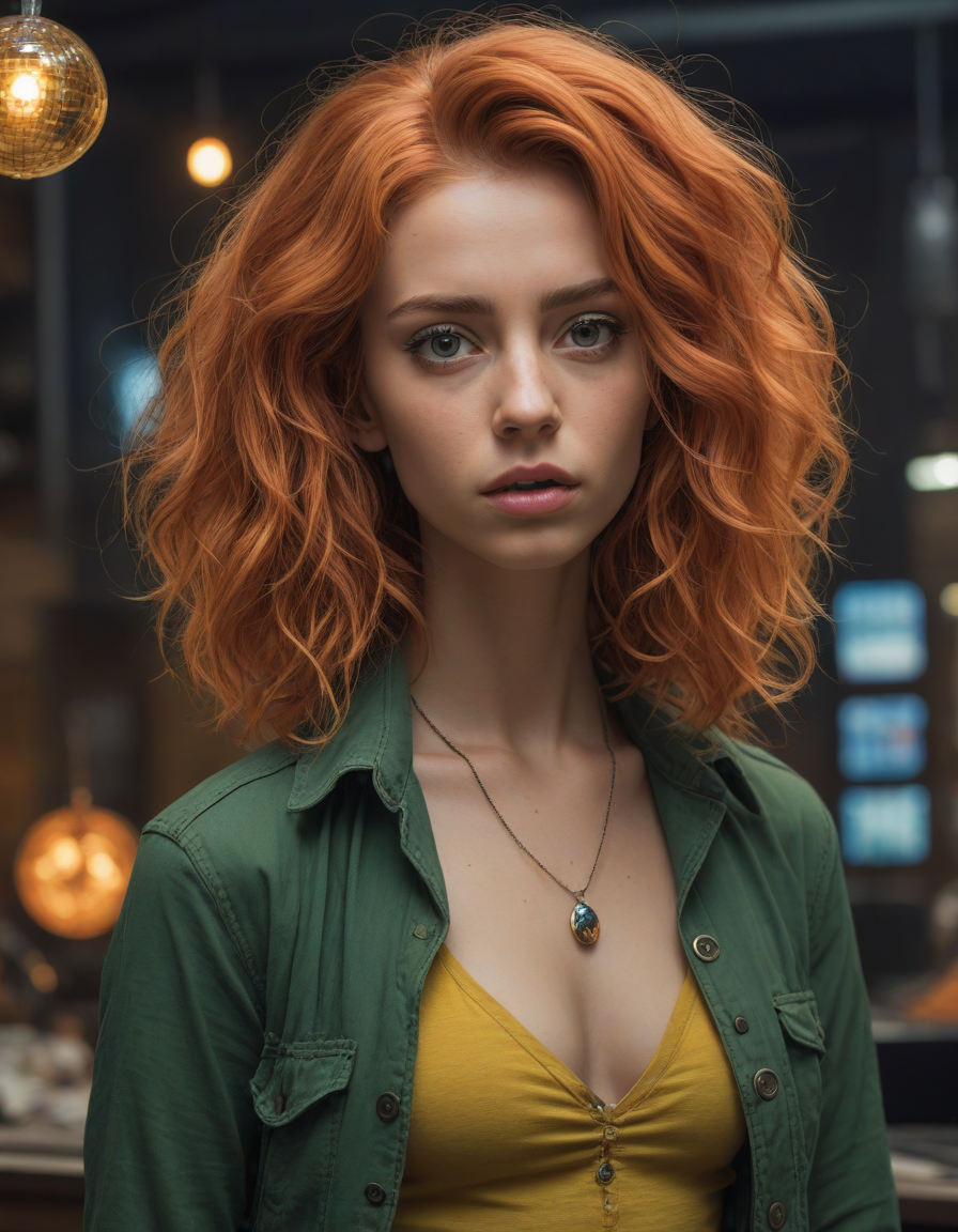 took too many drugs, Gaia from Italy, medium chin-length wild auburn orange hair