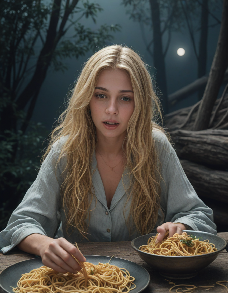 Moonlight on restless waves, eating spaghetti, Product Photo, Trembling with joy, extreme pain, crisp Blu-ray remaster