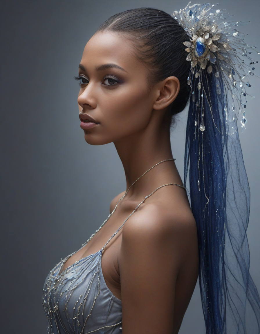 a delicate smoky veil, Glistening sapphire tail with each scale glimmering in the sunlight