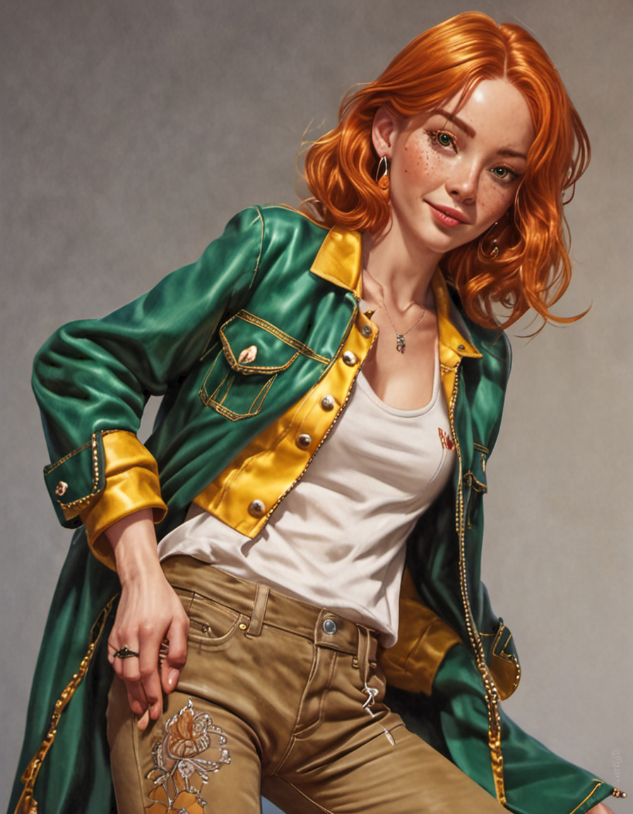 coordinated put-together ensemble, complementary colors, understated accessories→quirky mismatched outfit, clashing patterns, bold statement pieces