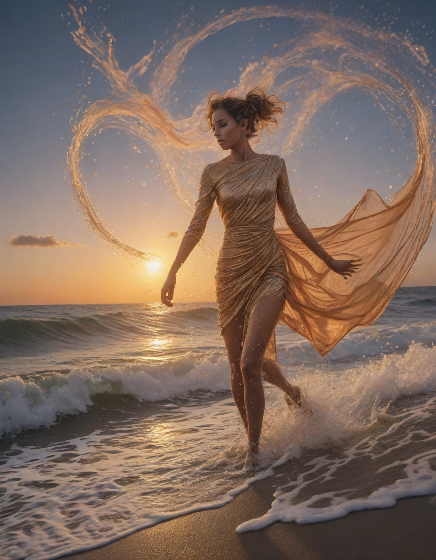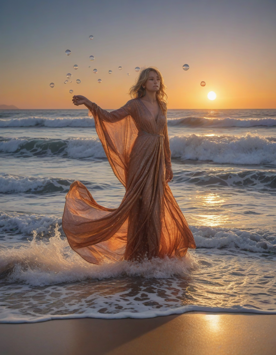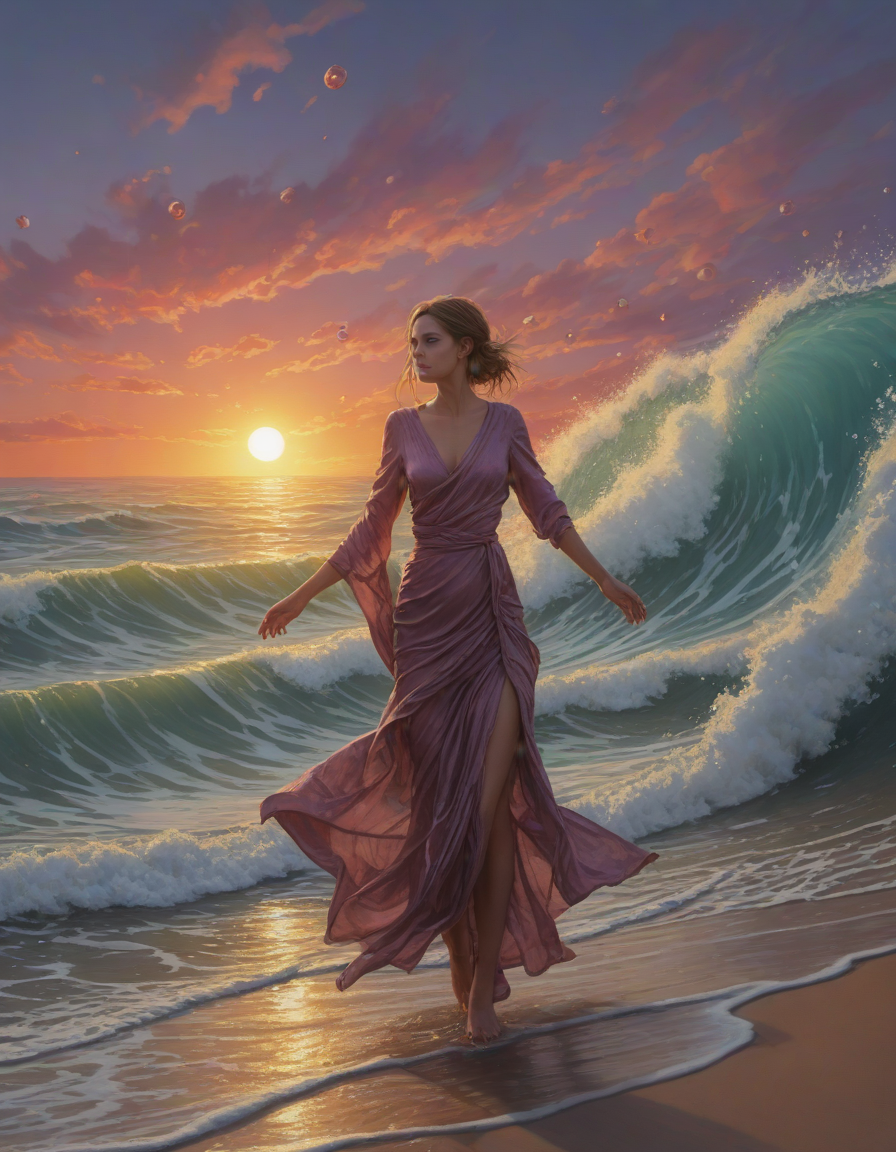 spritesheet, Bizarrely, bubbles popping, Haunting hue, Peering into the void, magical energy swirling around, Surfer catching wave in beach sunset, Shimmering splendor, elegantly draped rich crinkled robes swirling gracefully, sarcastic ridiculing