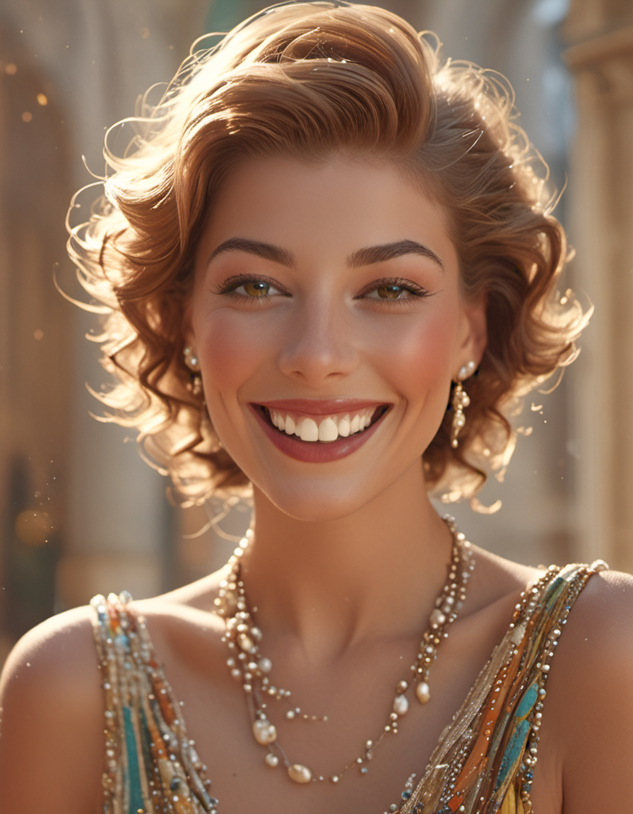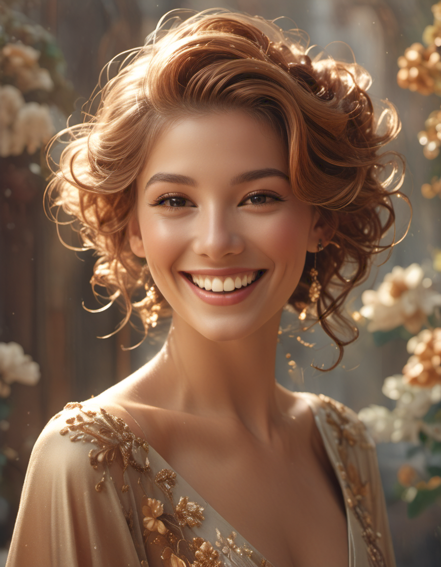 photograph, smiling happily, w...