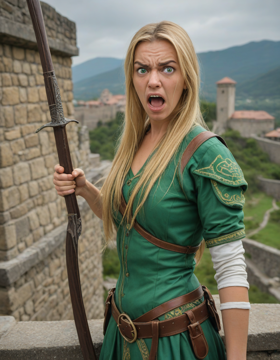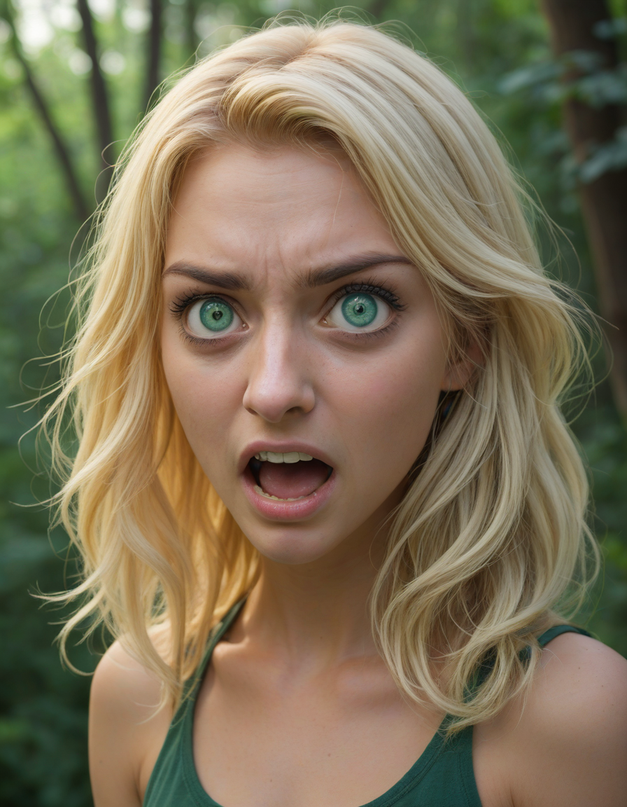 very upset, very goofy expression, Grunting face, radiant green eyes