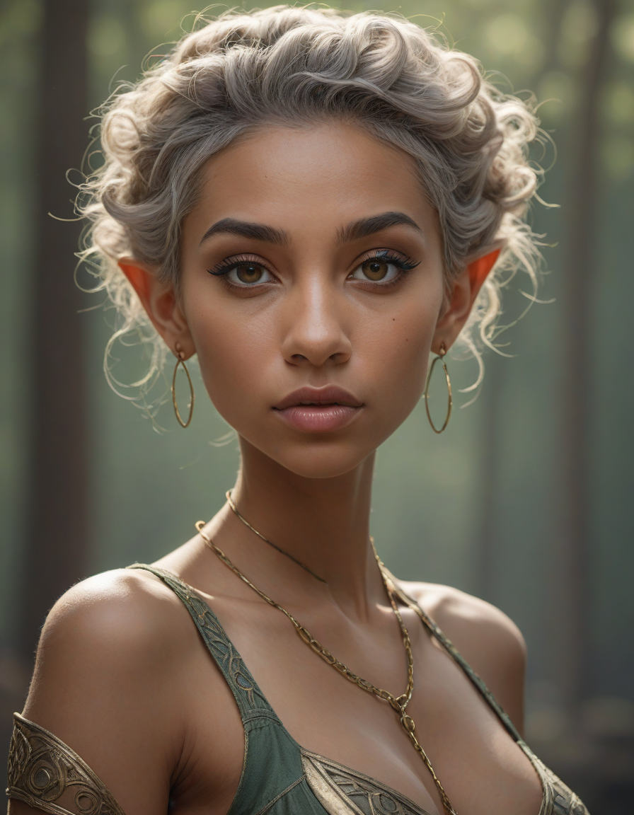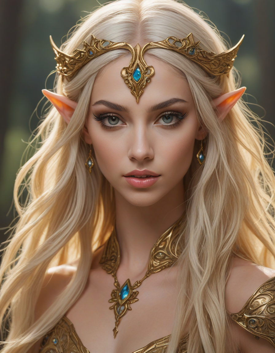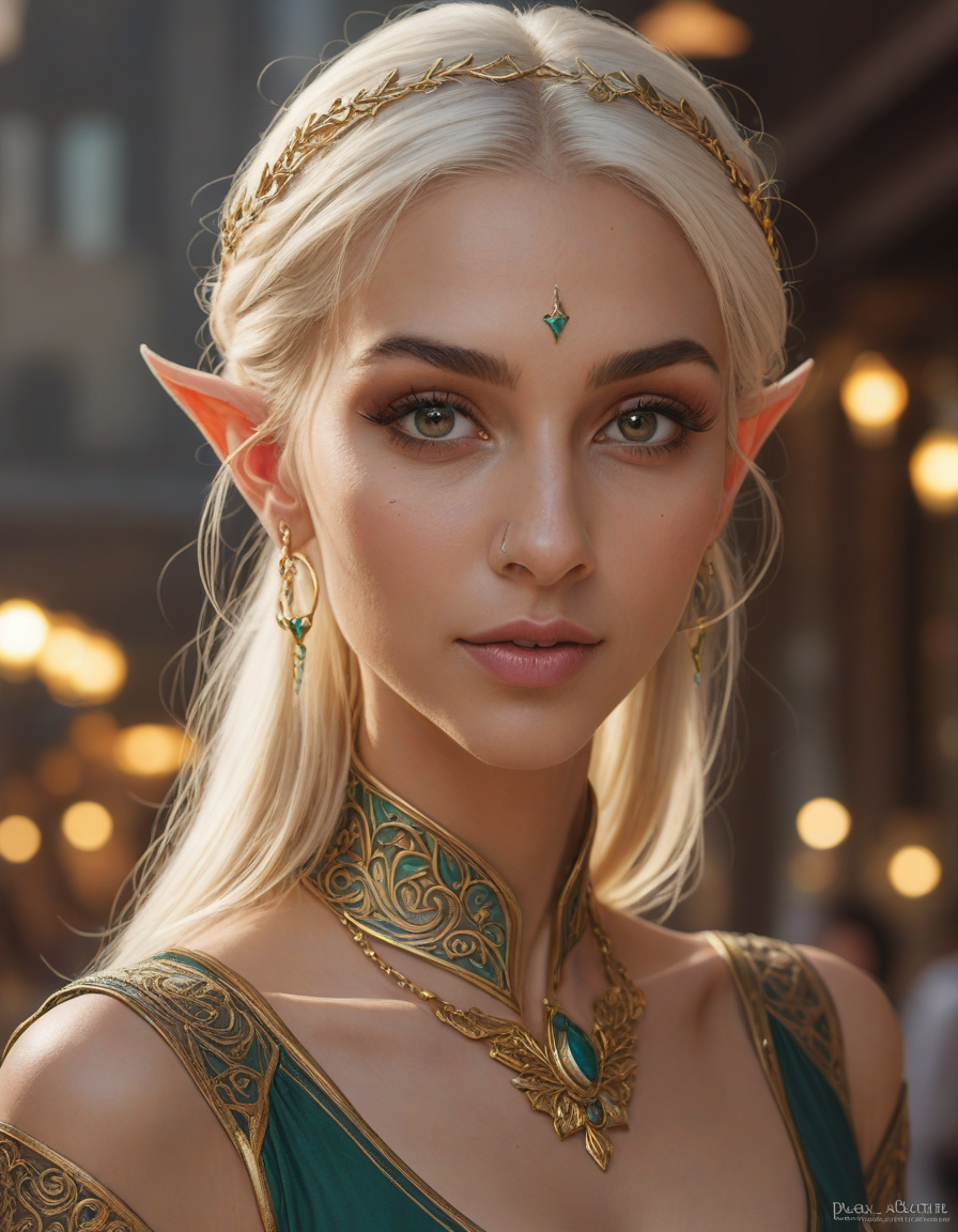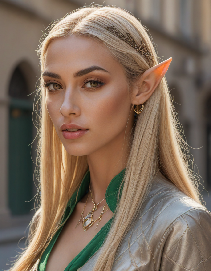 rich, exaggerated, caricatured comic style, female elf, Elven facial features, elven body, elven, lithe, distinct elven features, long elven legs, Slender, elongated physique, almond-shaped eyes, sharp cheekbones, pointed ears, ethereal beauty, graceful, agile, lithe, smooth skin, exotic, otherworldly aura, delicate features, tall and lean, vibrant eye color, light skin, Yearning in gaze, Outrageous fashion