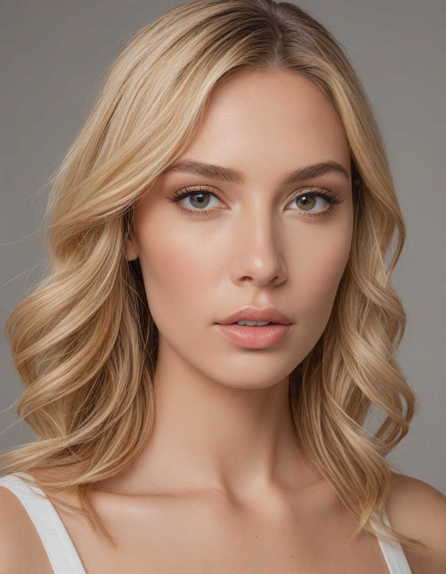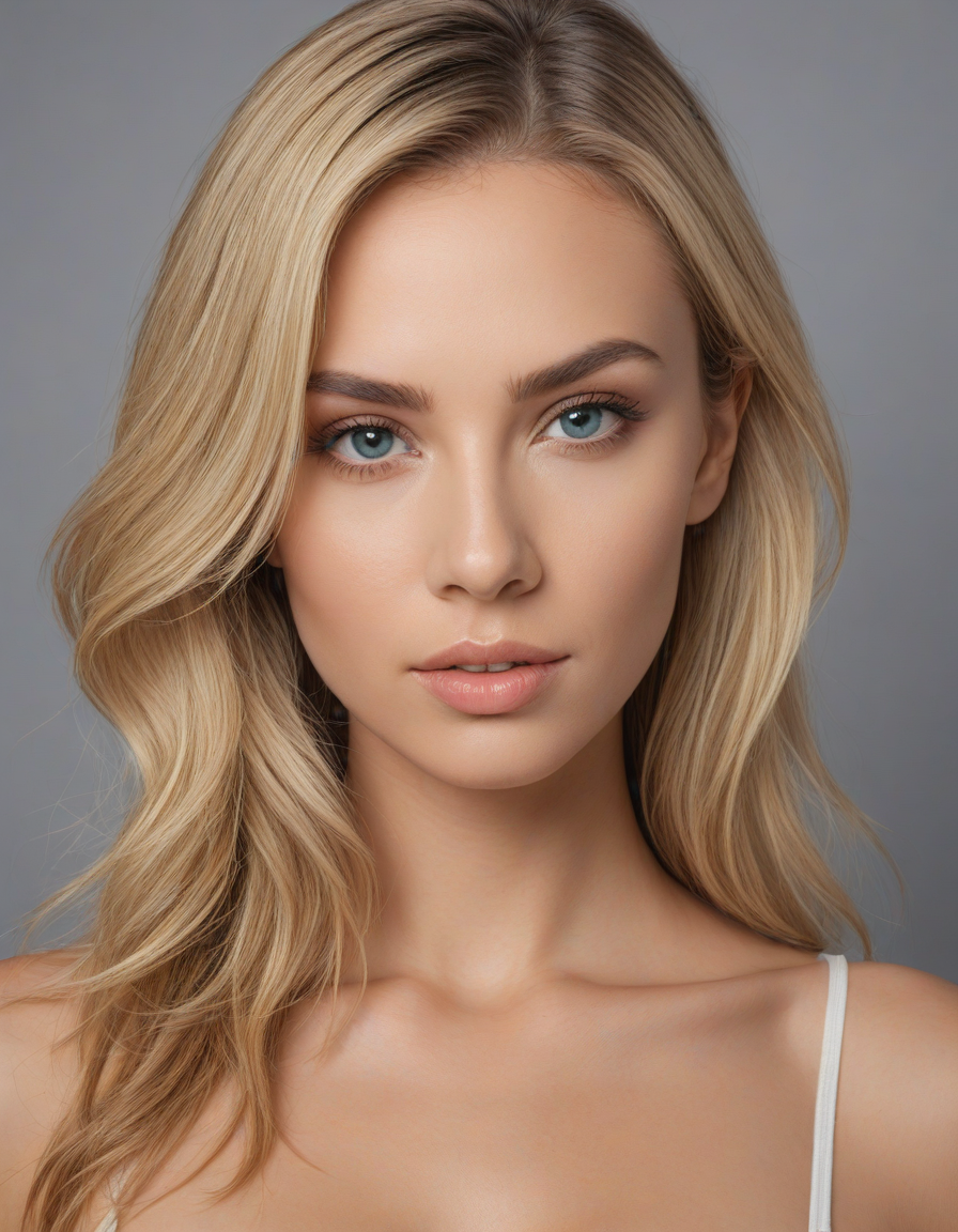 oval face shape, almond-shaped eyes, voluminous lashes, slightly arched eyebrows, narrow nasal bridge, rounded nose tip, symmetrical nostrils, full lips, pronounced cupid's bow, slightly fuller lower lip, defined cheekbones, rounded chin, smooth complexion, softly contoured jawline, balanced facial proportions, symmetrical features, gently curved eyelids, soft brow ridge, harmonious cheek to jawline transition, subtle philtrum, delicate ear lobes, straight blonde hair, clear skin, hooded eyelids, light pink lip color, slightly pouty expression, casual pose with hand on face, slight head tilt, indoor lighting, Light blue irises, Medium-thickness eyebrows, Softly angled eyebrows, A hint of freckles across the nose and cheeks, Natural makeup, Gentle frown lines between the eyebrows, Soft nasolabial folds, Smooth forehead, Subtle dimple on the chin, Clear facial contour without distinct shadows, Even skin tone with a hint of natural pink undertones, Slightly rosy cheeks, Tapered jawline, Fine hair texture with gentle waves, Youthful appearance with soft facial features, Holding a sword in both hands in a confident pose, detailed grip, detailed fuller, detailed pommel, detailed blade, detailed edge, , excessive cleavage, low neckline, revealing chest, revealing cleavage, cleavage-baring, revealing, excessively revealing, very revealing, lowcut, lowrise, , Lip fillers, thick full lips, enhanced lip volume, accented cupid's bow, Rhinoplasty, refined nose shape, straightened nasal profile, facial symmetry, Botox injections, smoothed facial lines, reduced wrinkles, youthful appearance, Cheek fillers, pronounced cheekbones, sculpted contours, lifted cheeks, brightened eyes, reduced under-eye bags, rejuvenated area, Liposuction contoured shape, reduced excess fat, sculpted physique, Dermal fillers, restored volume, smoothed texture, diminished lines, strengthened definition, balanced proportions, enhanced jawline, Facelift, tightened skin, reduced sagging, improved skin tone, reduced imperfections, enhanced clarity, Blepharoplasty, Reduced puffiness, restored youthful eye contour, Enhanced chin shape, improves facial harmony, strengthened jawline definition, symmetry facial features, golden_ratio