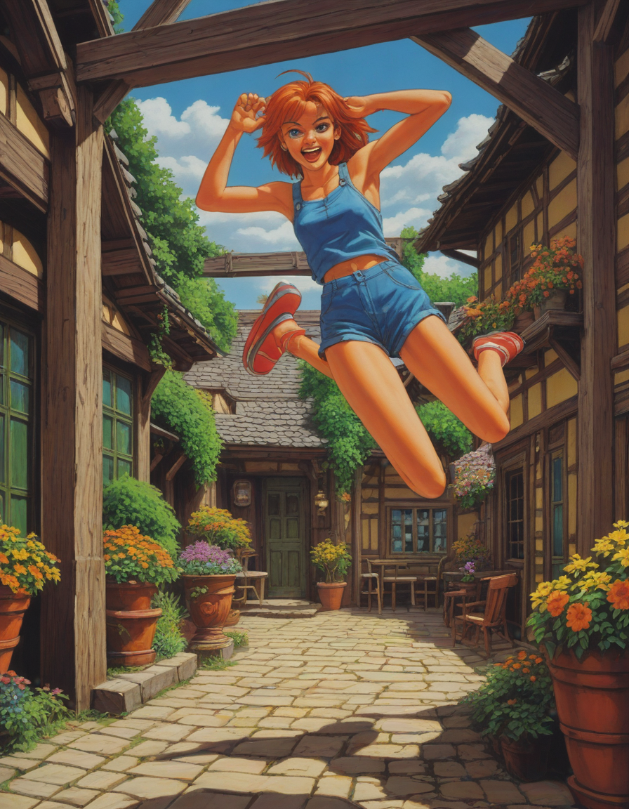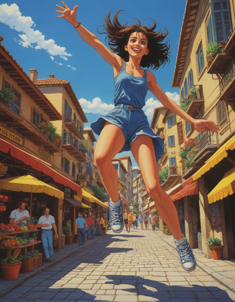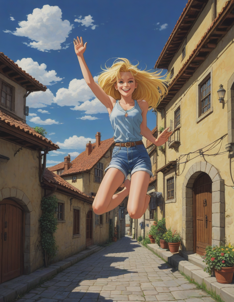 sega cd cutscene, jumping for joy on a sunny day
