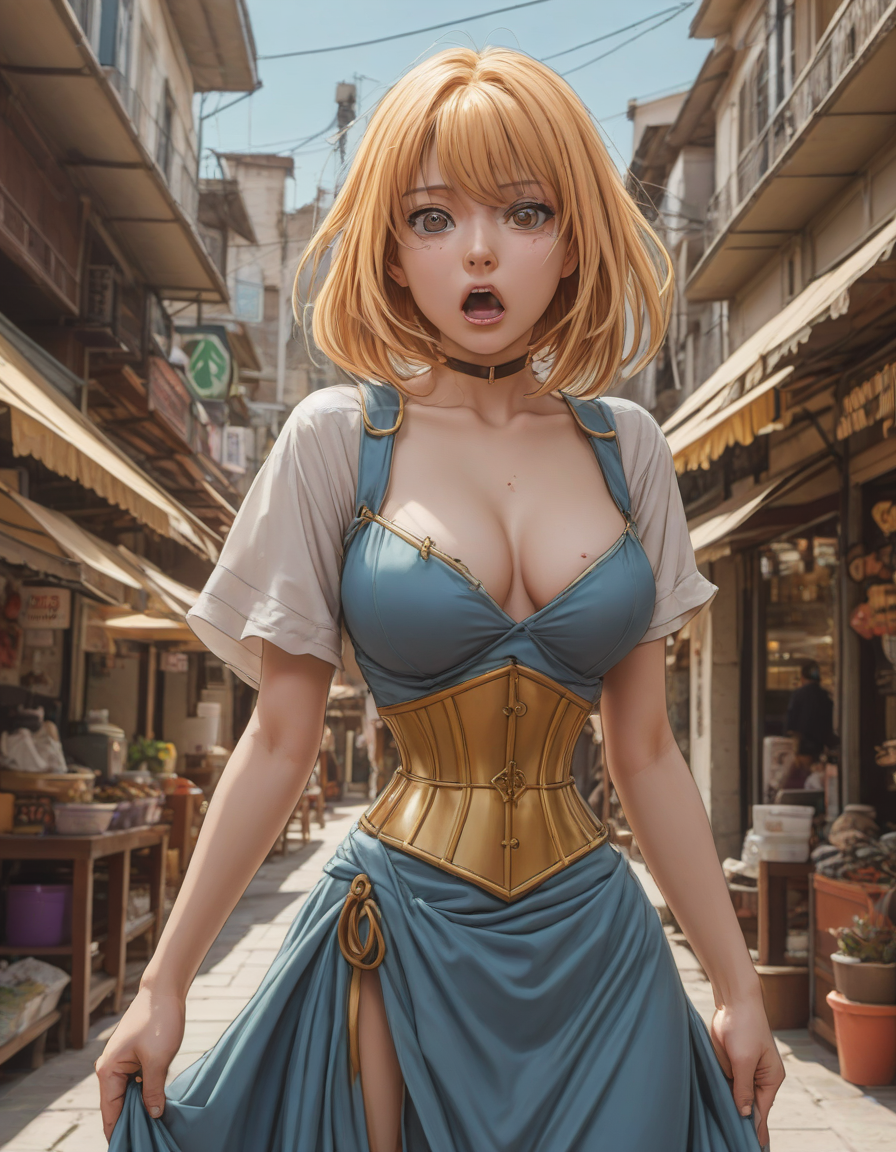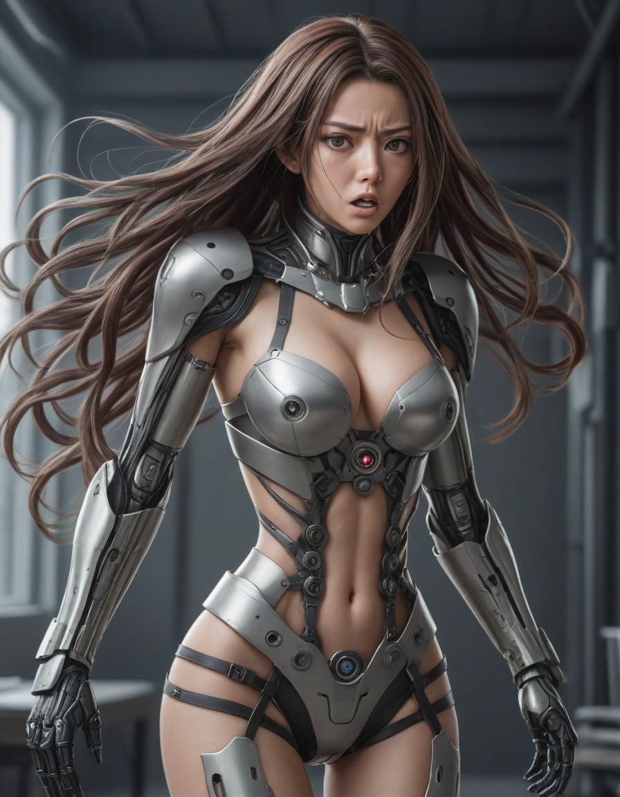 Anime-style hourglass figure, Blinding speed, surprised, extreme pain