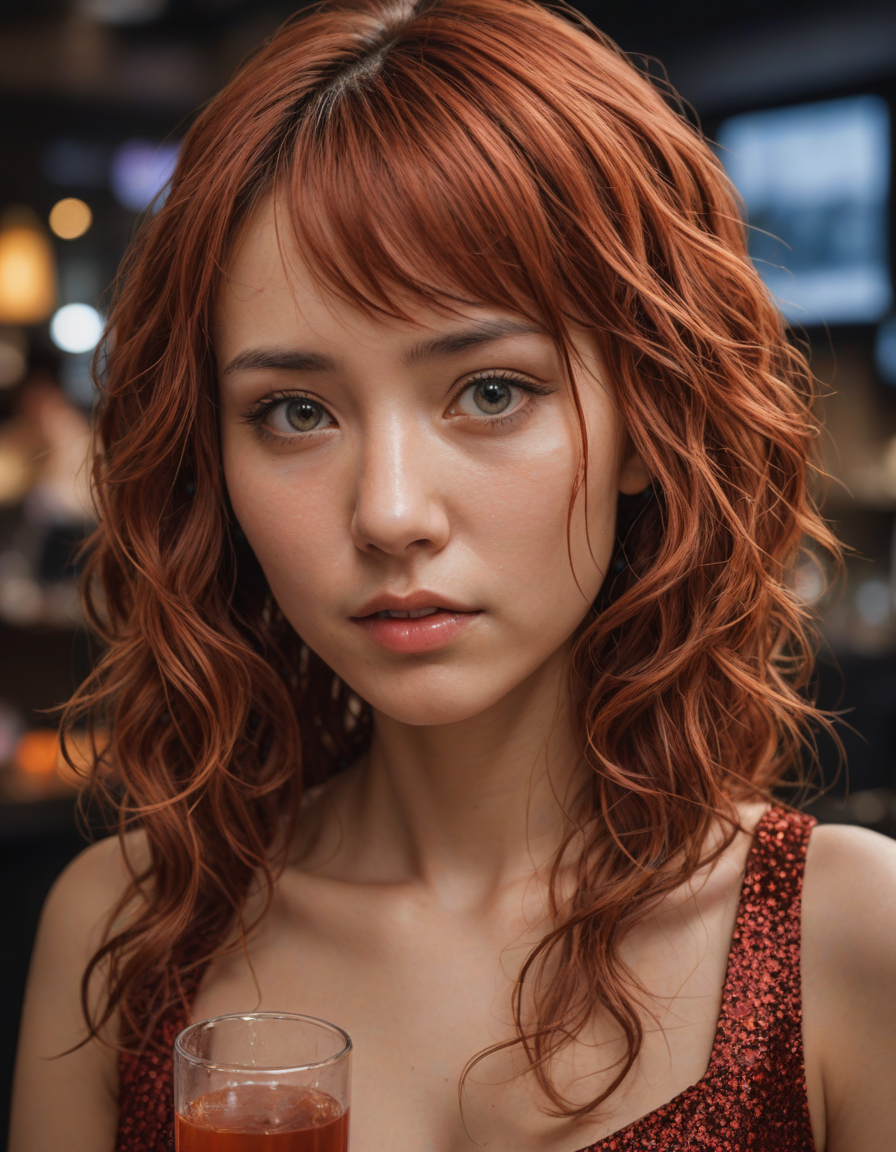 photo of the santa drunk at a bar, diablo, A person made of shimmering water, creative, glaring hate, Brocade dress, voxels, Tears streaming down her face, huge anime eyes