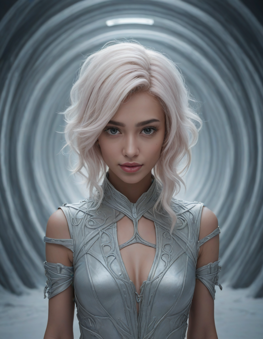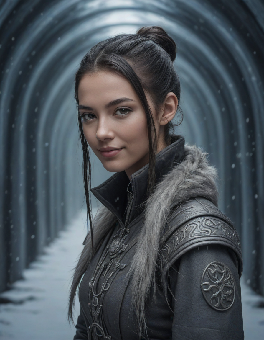 in perfect harmony, Gleeful, yet held back with an eerie tight-lipped glare, attractive, half mask, Smug chuckle, glowing ice tunnel
