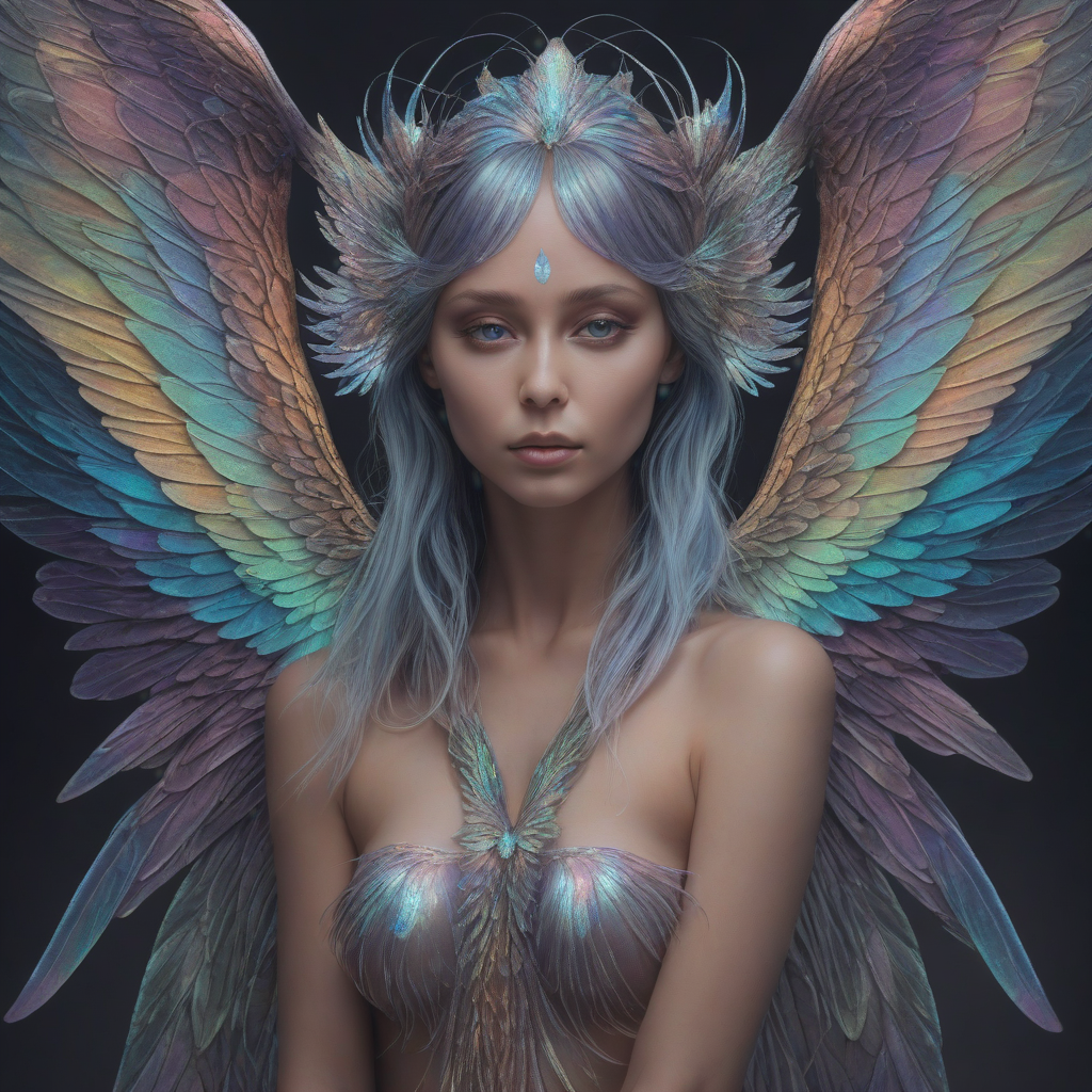 the camera, (centered on a) wondrous scene, Mystical being with iridescent wings, HDR, high dynamic range, super zoom lens, dancing flames, The fallen autumn leaves danced celebration around her as if to witness her bloom, going supersaiyan, immersed in, hair flowing in the wind, Dreamlike wonderland, different but amazing, caught in a downpour, smooth complexion, neoclassical, fearful
