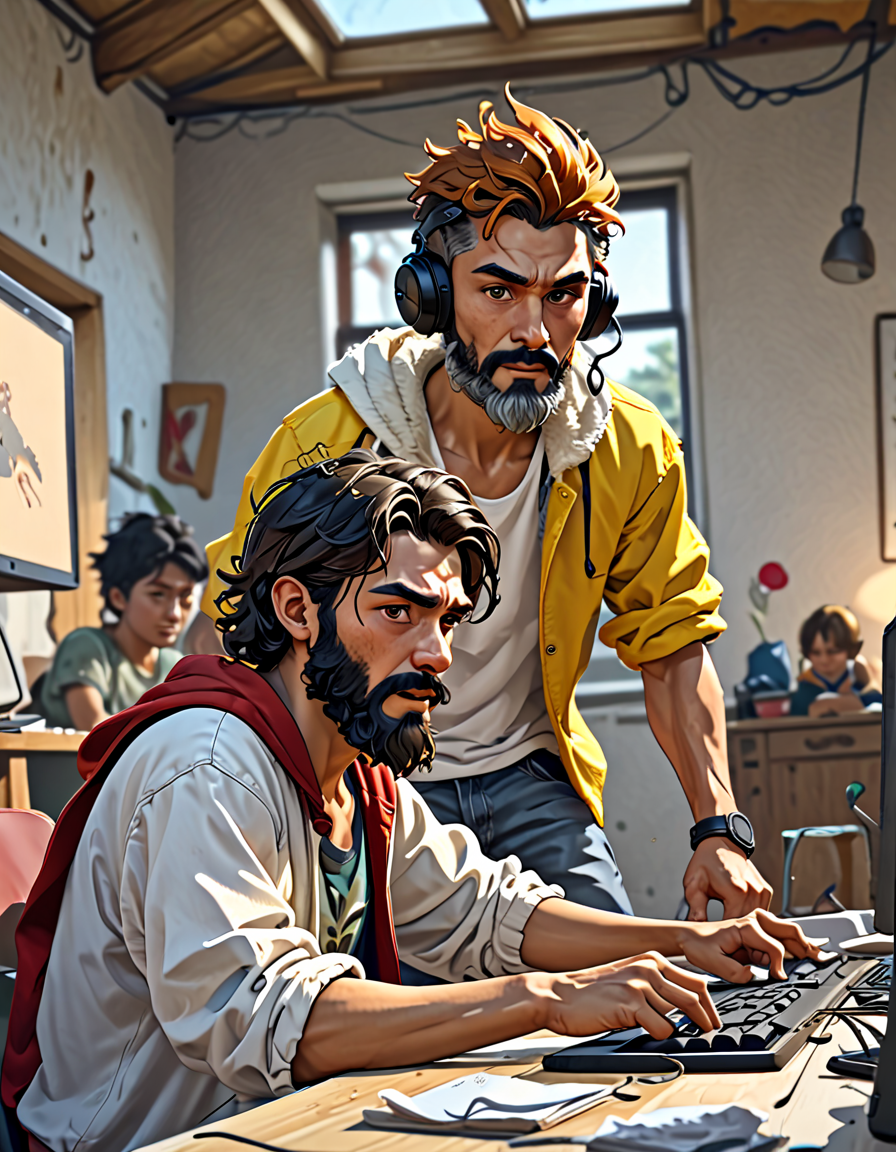 dynamic action pose, sharp -> ... (2 loras merged)