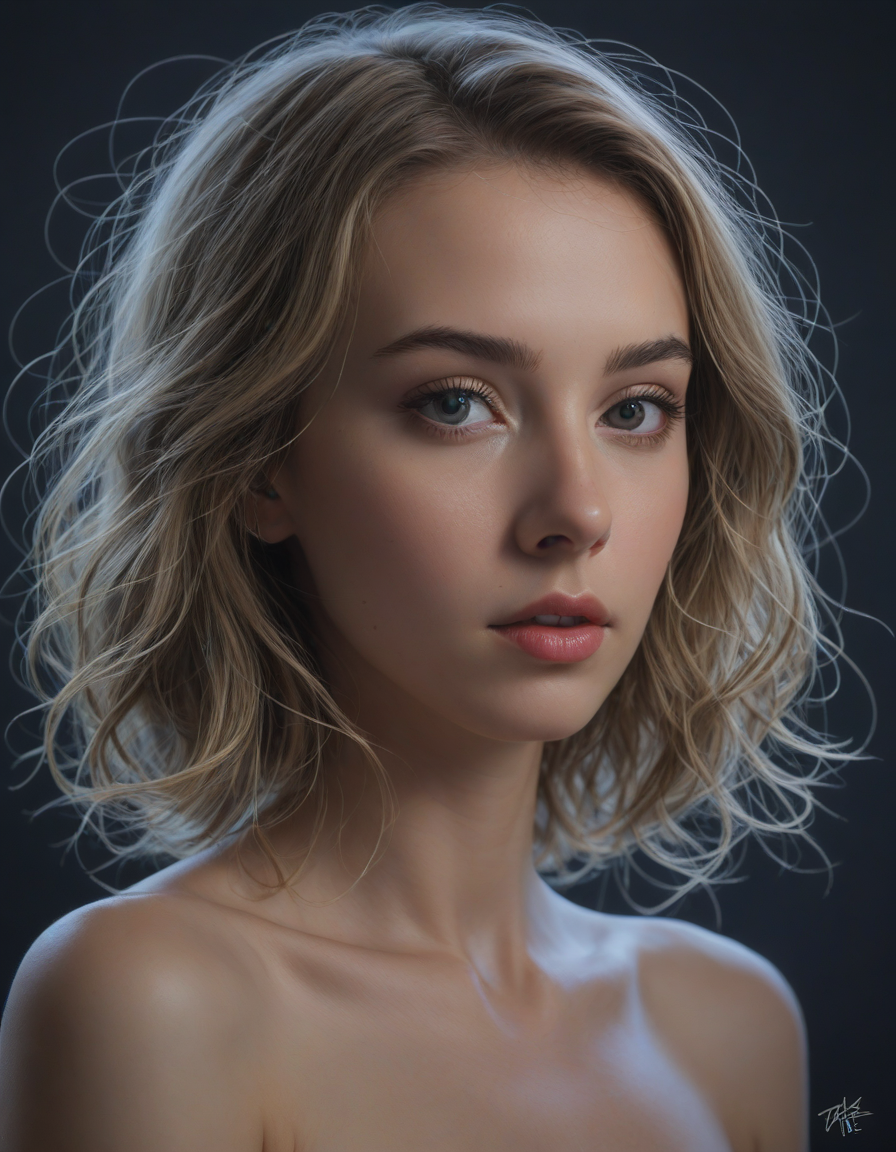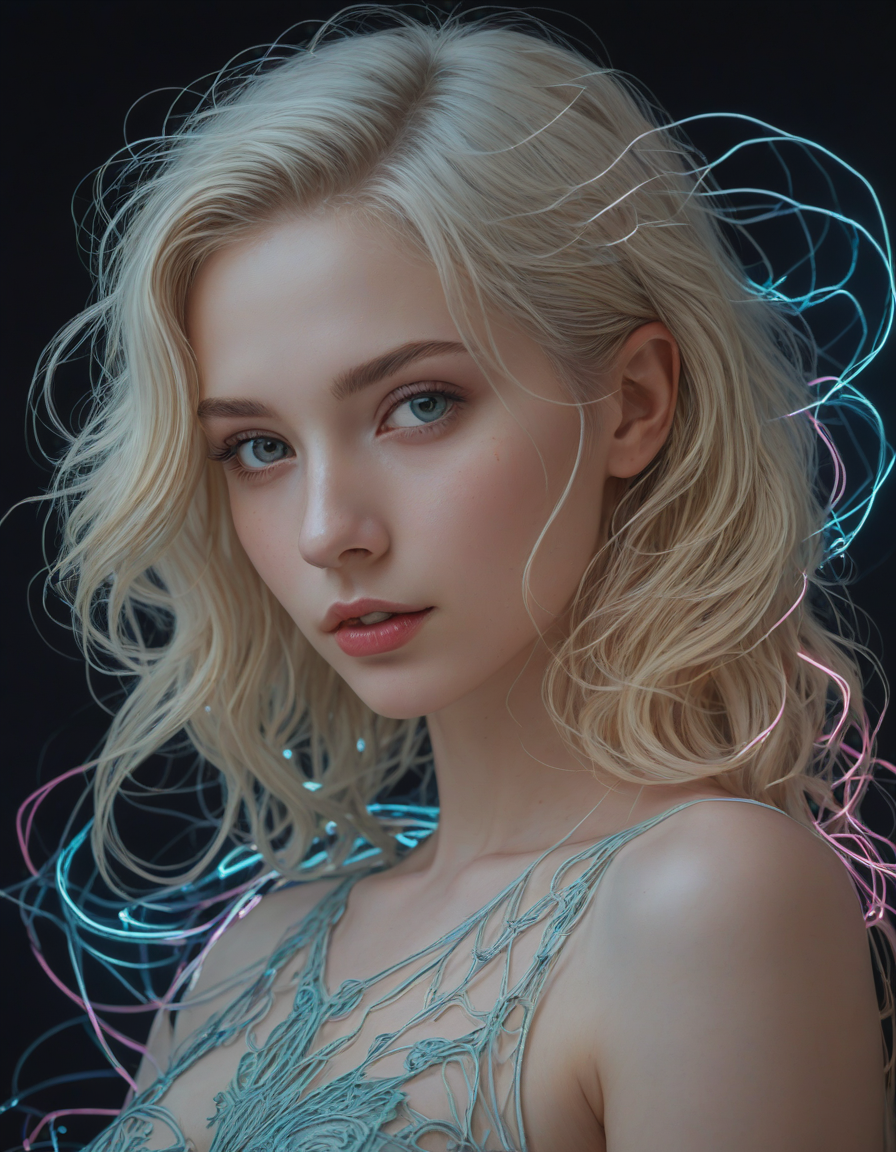 Delicate beauty, A painting of splendid beauty, A figure etched in neon lights, immersed in
