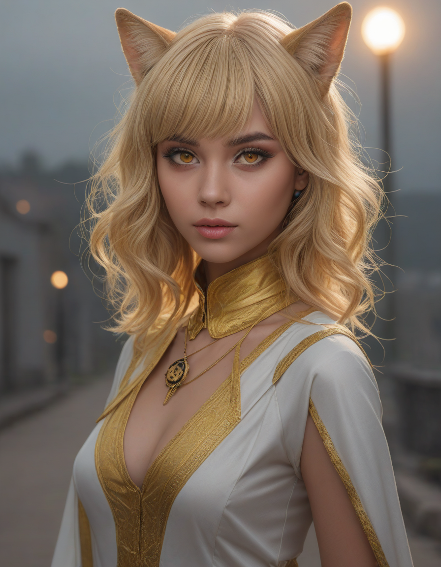 superhero, makeup, charming, hazy morning, Witching hour, appalled, active, bell haircut, rich, Warmly Welcoming, yellow cat-like eyes