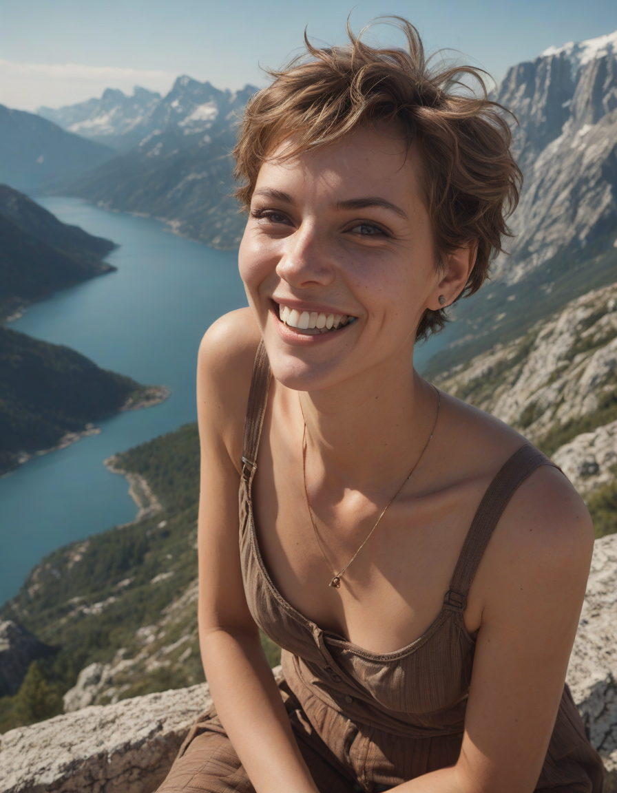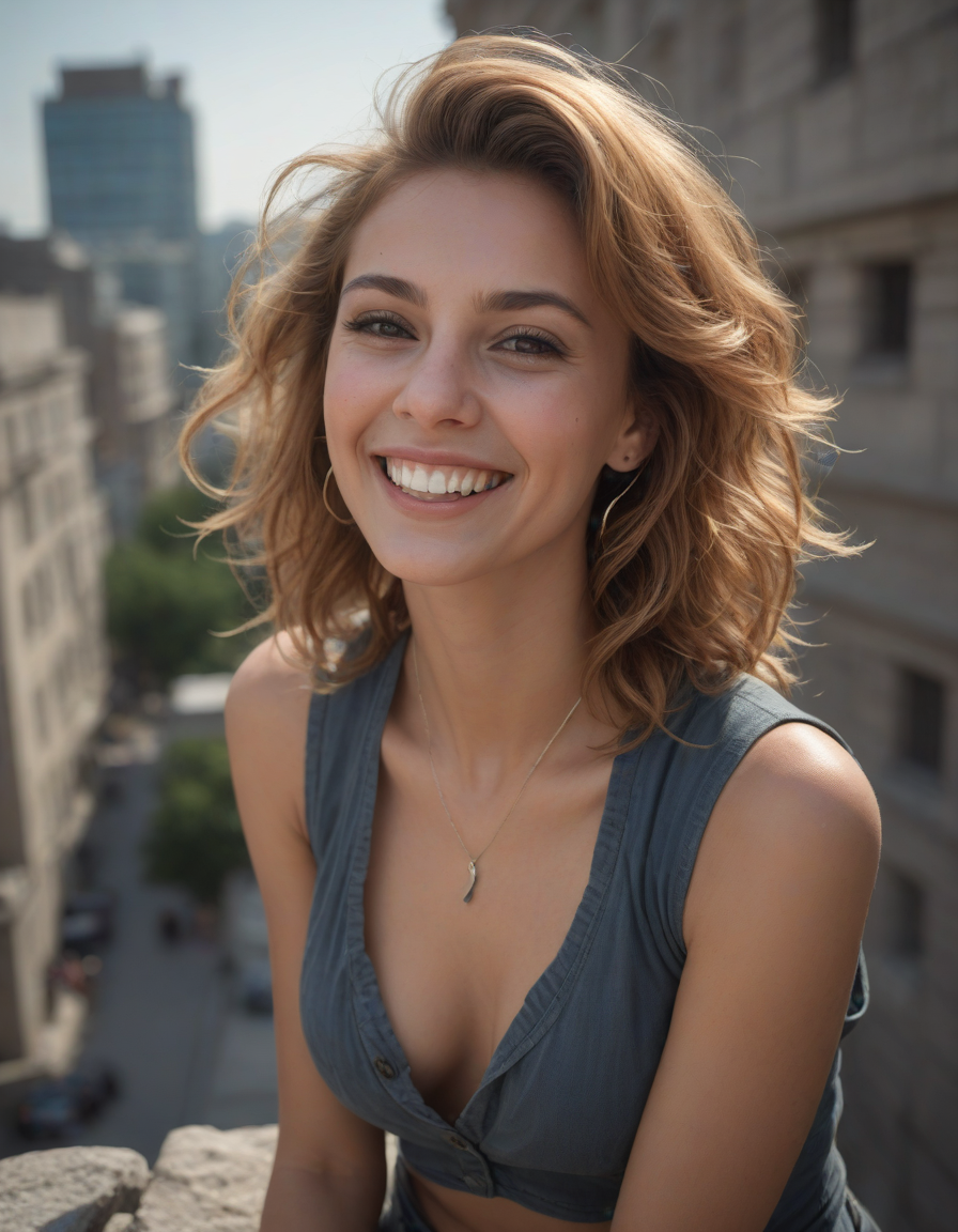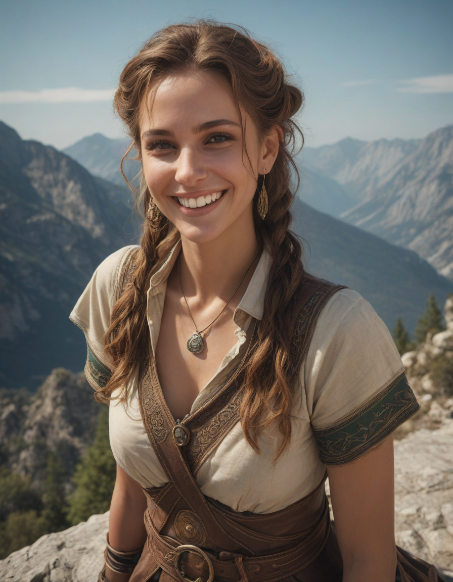 New Romantic 80s clothing, laugh, skyrim npc, playful grin, lost in a trance, eyes glued to the horizon, Devotion, view from above
