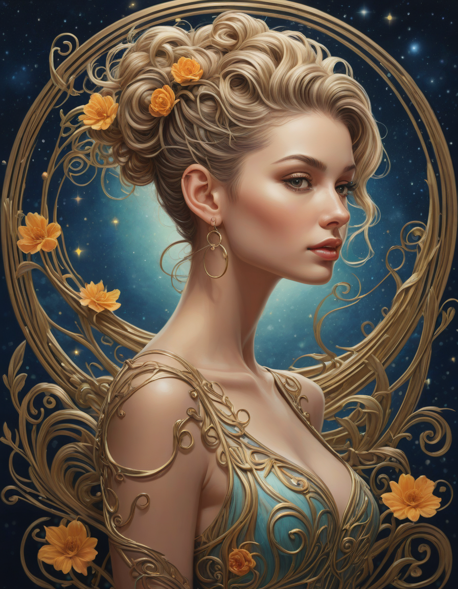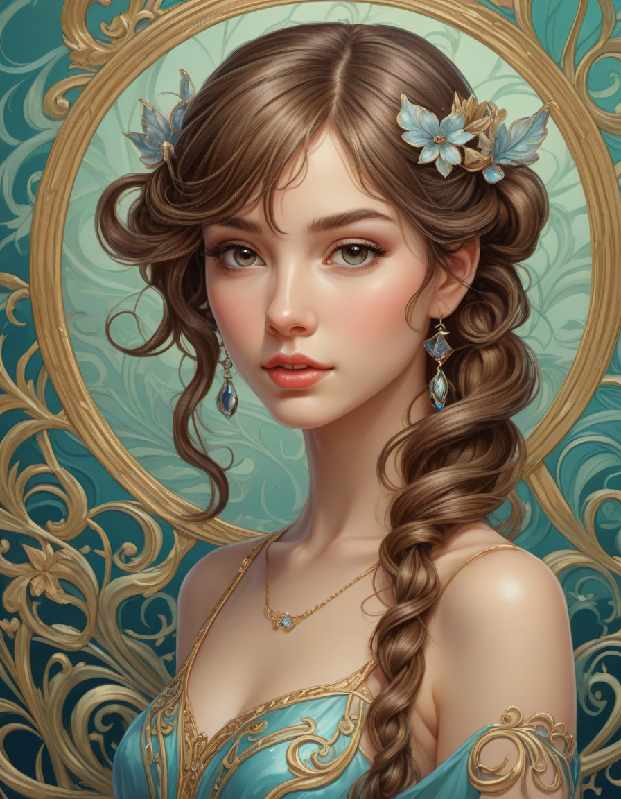 highly stylized, artistic, close-up, macro, smooth brushstrokes, art nouveau, elegant curved lines, nature-inspired motifs