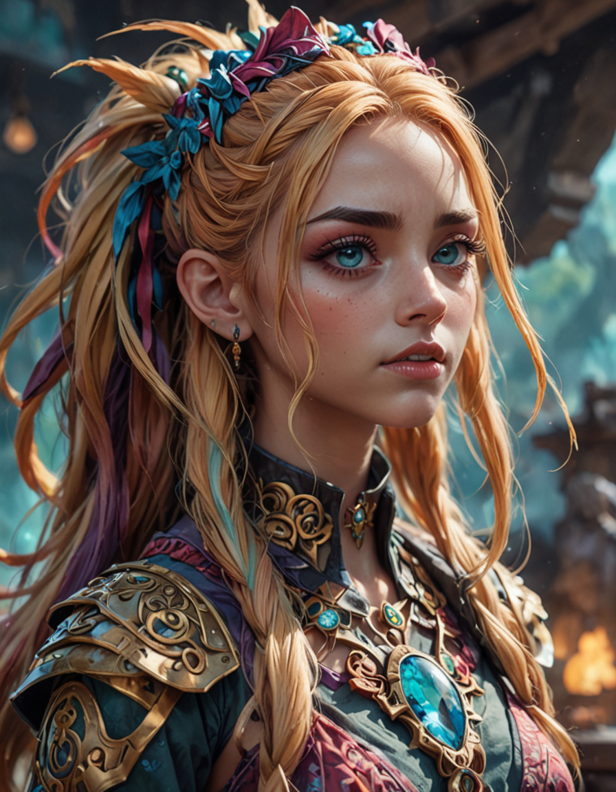 wearing colorful tie-dye, huge... (6 loras merged)