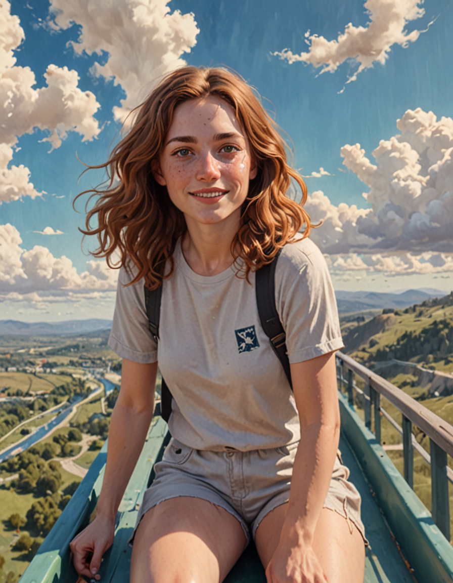 closeup view, limited background, shallow depth of field→bird's eye view, tiny detailed landscape, vast expansive vista