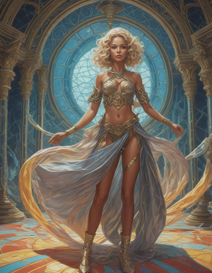 isometric view, Tron-like, Outrageous fashion, wheres waldo picture, deft movements, Shattered glass reflecting vibrant hues, dances in an ethereal swirl
