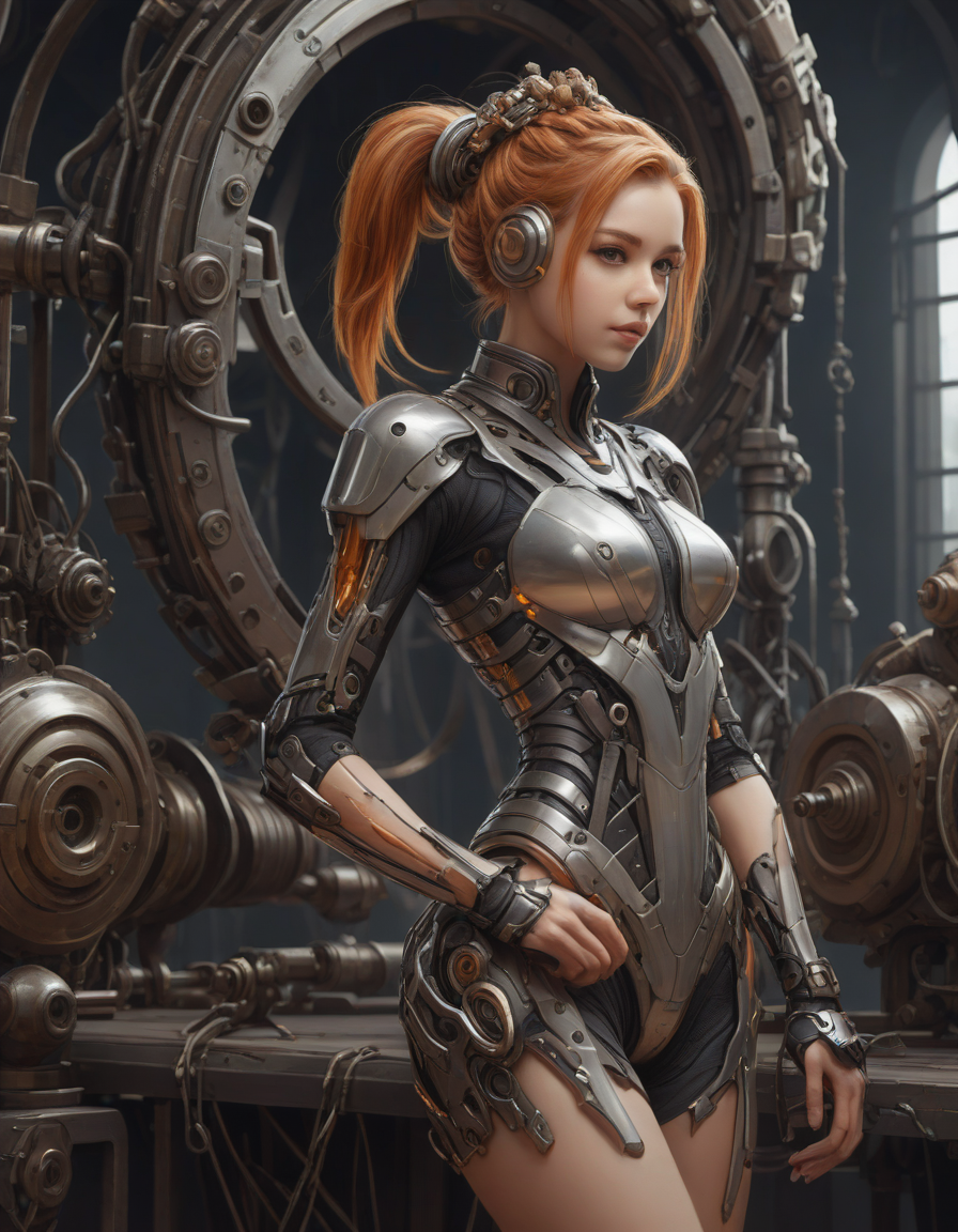 detailed biomechanical elements, futuristic cyborg parts, cute, adorable, smooth brushstrokes