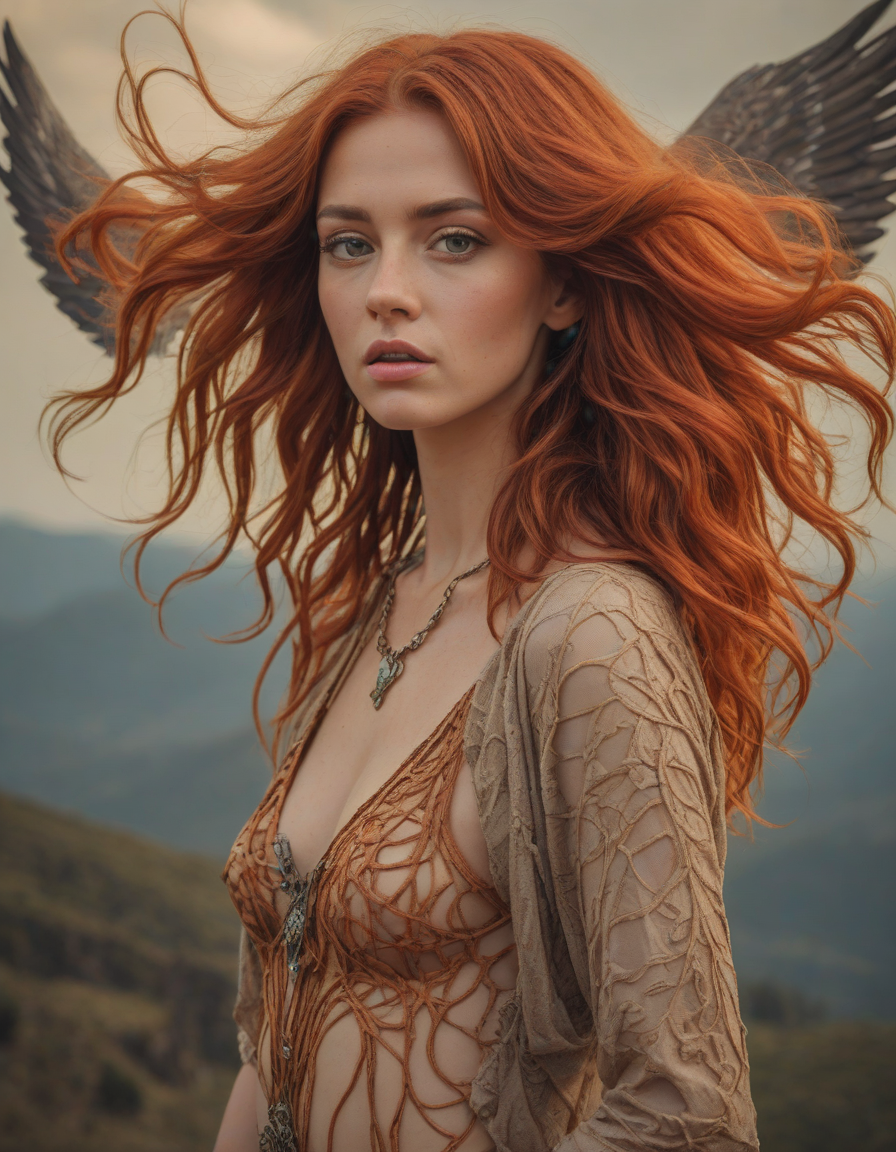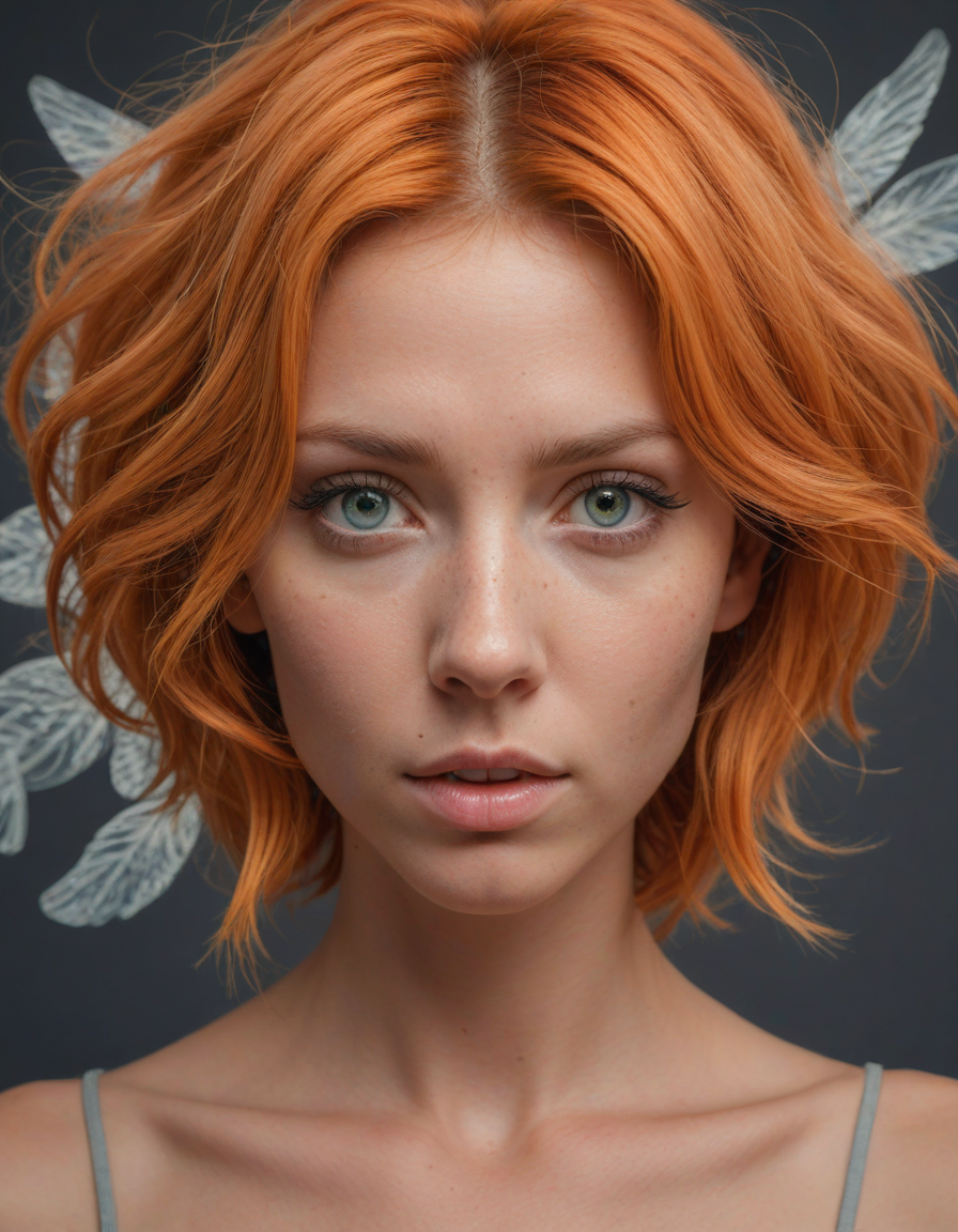 bell haircut, afraid, Gaia from Italy, medium chin-length wild auburn orange hair